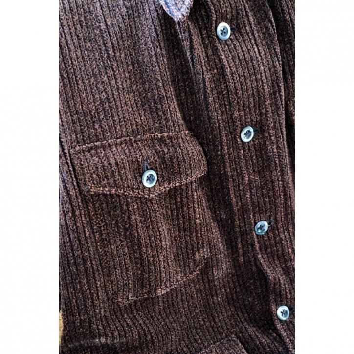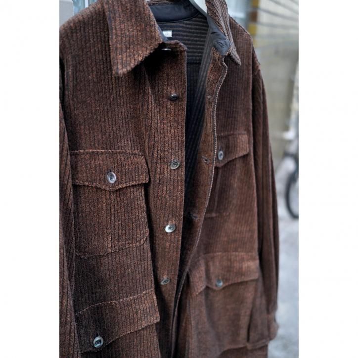 太めの畝のコーデュロイは銅が錆びたような雰囲気を想起させる真鱈なブラウン。