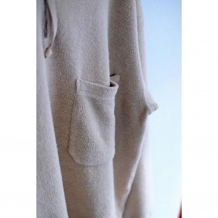通常スウェットで裏毛として使われるような生地を表面に、しなやかで上質なコットンを裏目面に配したスウェットを裏返したかのようになっているのが特徴。