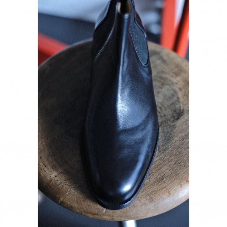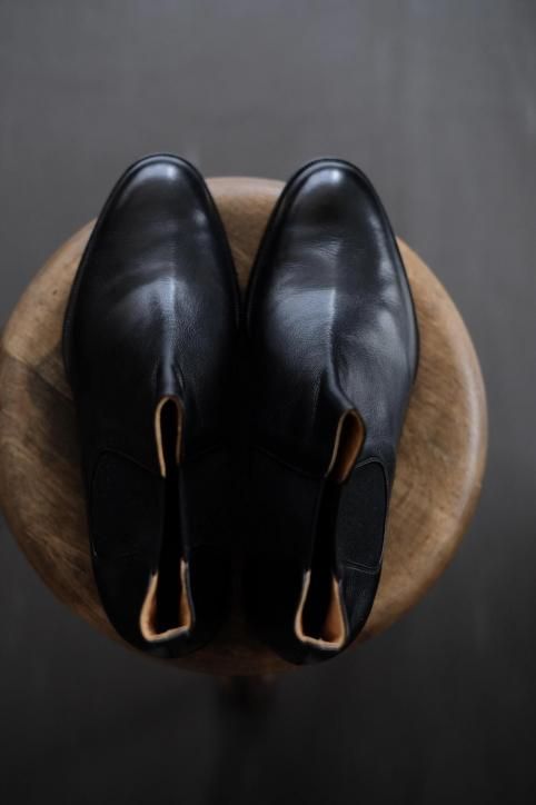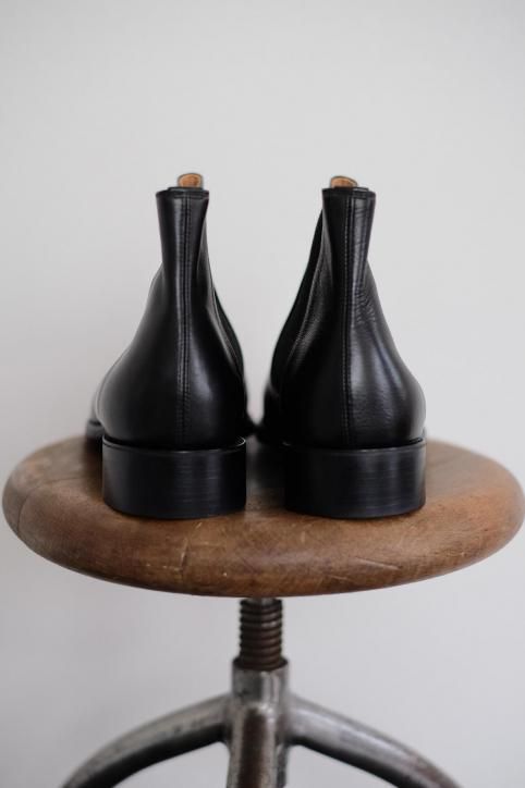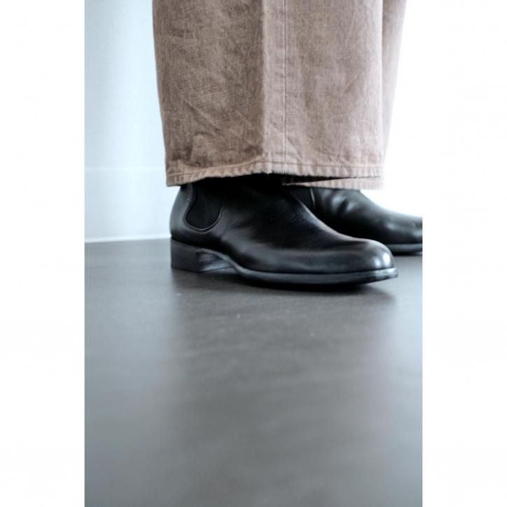 また、アッパーの継ぎ接ぎも極力無くすことで、よくあるサイドゴアブーツのぽってり感が限りなく少なく、むしろ色気すら感じられます。