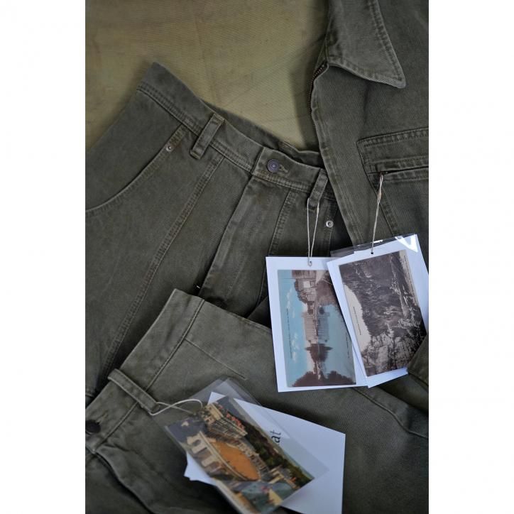 何より今シーズン注目したこのグリーンデニムの生地が素敵すぎる。