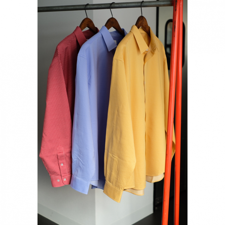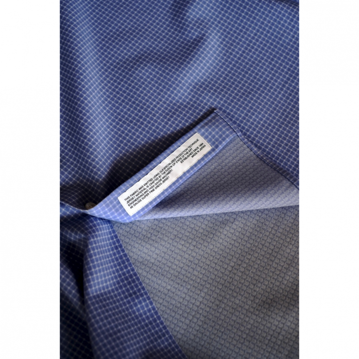 36G という、スーパーハイゲージでタイプライターという織物の高密度平織組織を実現。独自のジャガード技術で、チェック柄を形成しております。