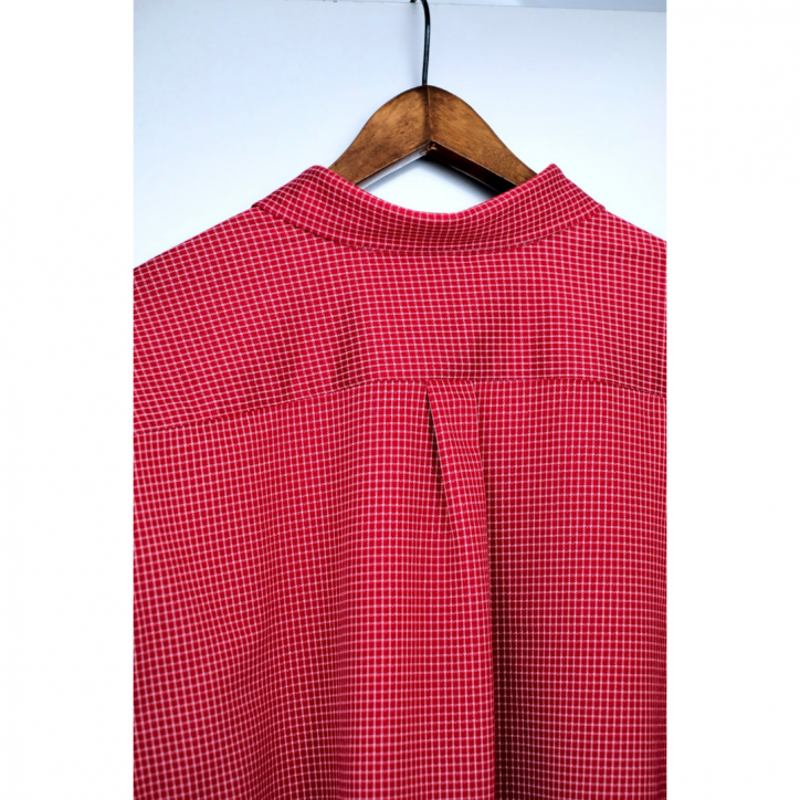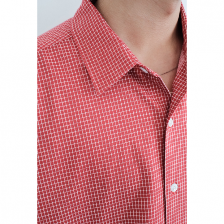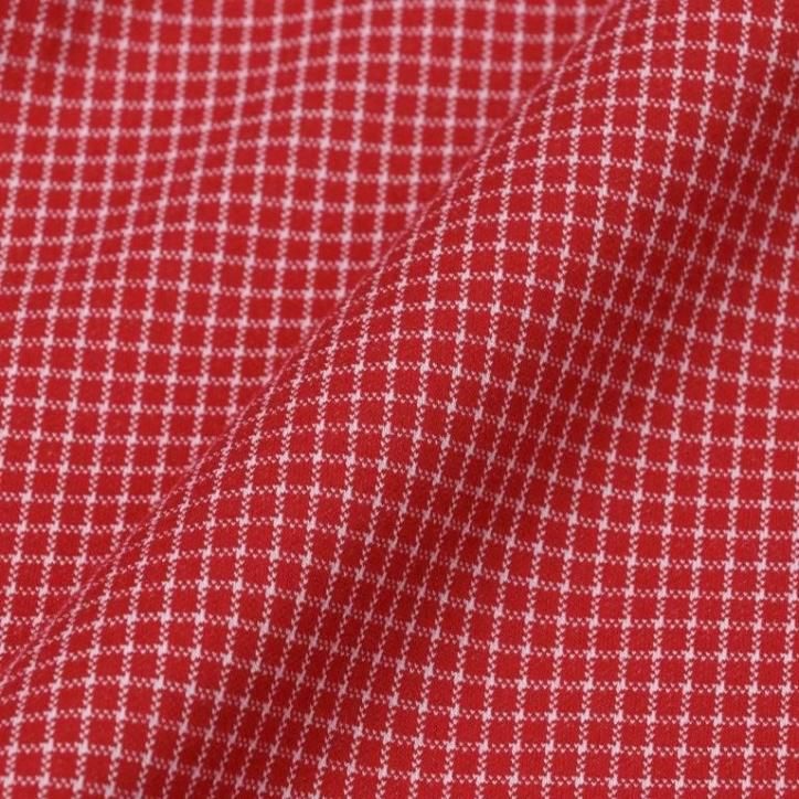 36G という、スーパーハイゲージでタイプライターという織物の高密度平織組織を実現。独自のジャガード技術で、チェック柄を形成しております。