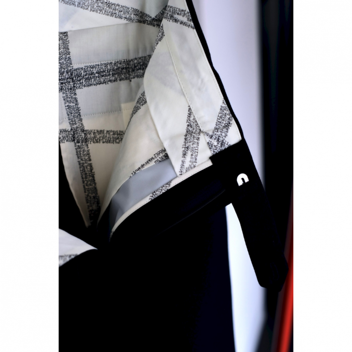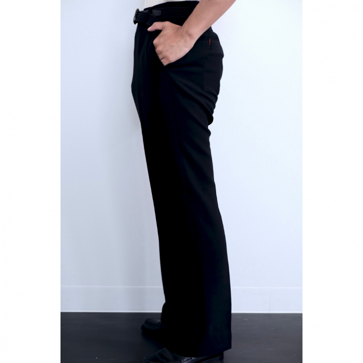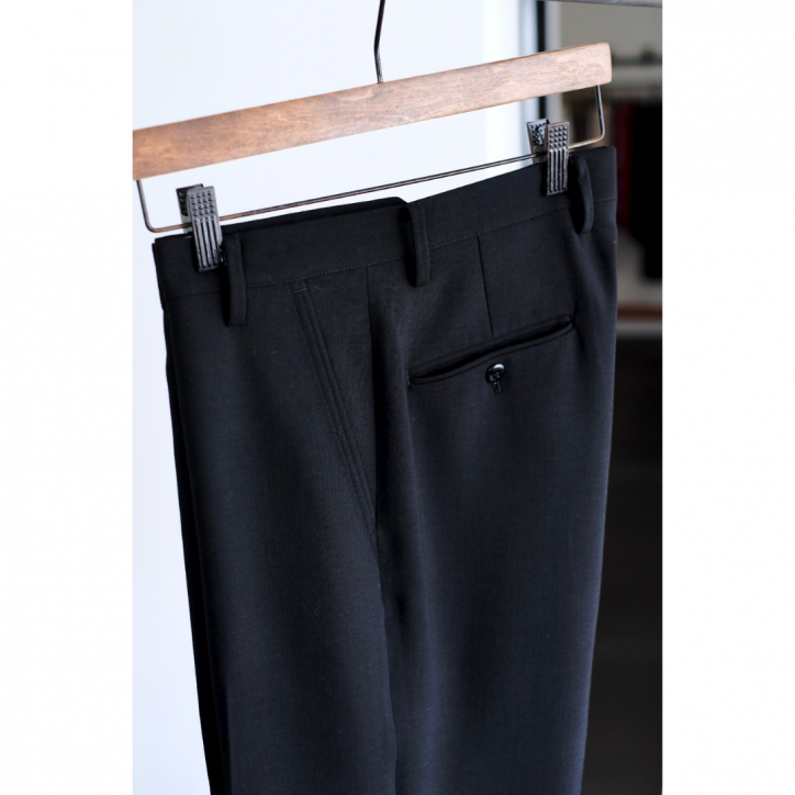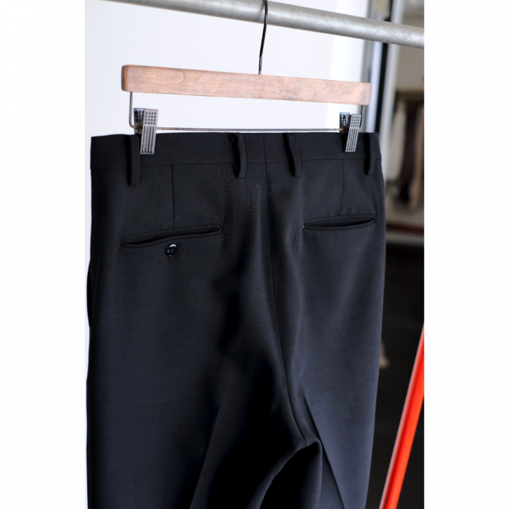 クラシックなトラウザーの要素を基調としながら、ラインの美しさを追求することでモードな解釈へと昇華させています。