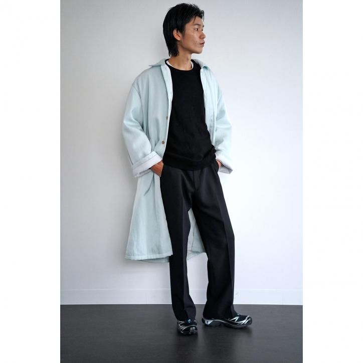 歩行に伴い裾が描く自然な揺らぎは、スタイリング全体に動きを与えてくれ、重厚な存在感を演出。