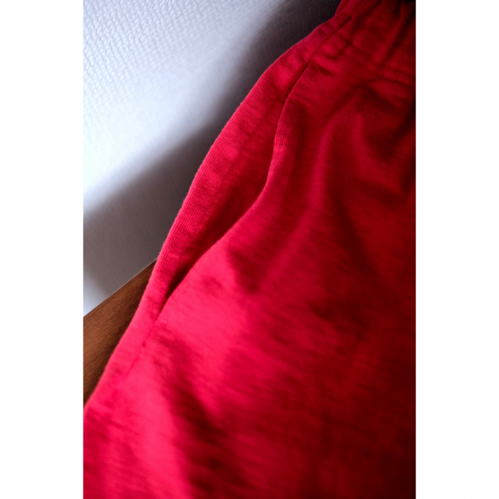 また、縫製がフラットシーマ、脇にハギが無いのでジャージパンツらしからぬ見え方に。
