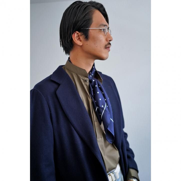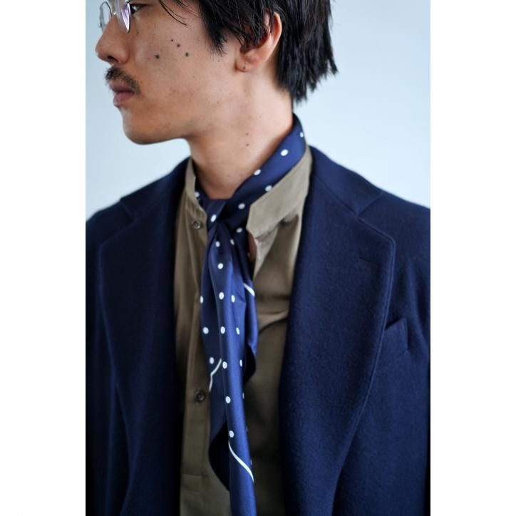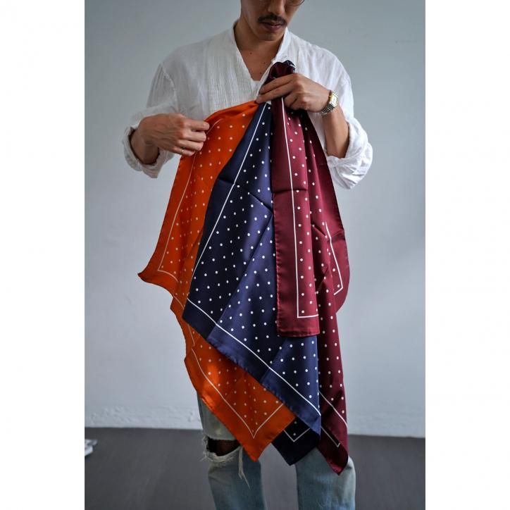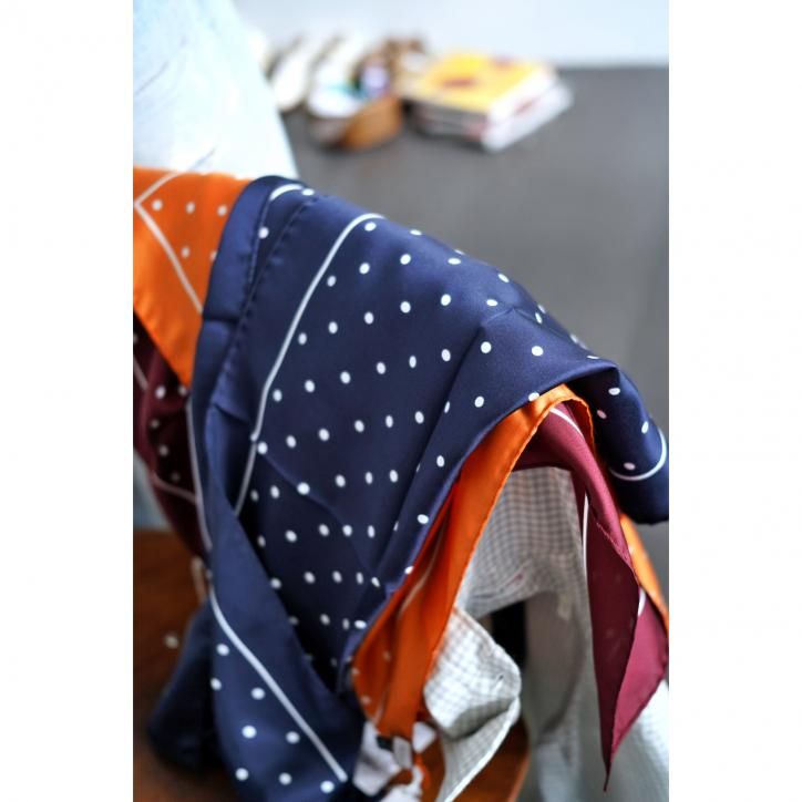 シンプルでフレンチな空気を感じさせるドットパターンのバンダナスカーフ。