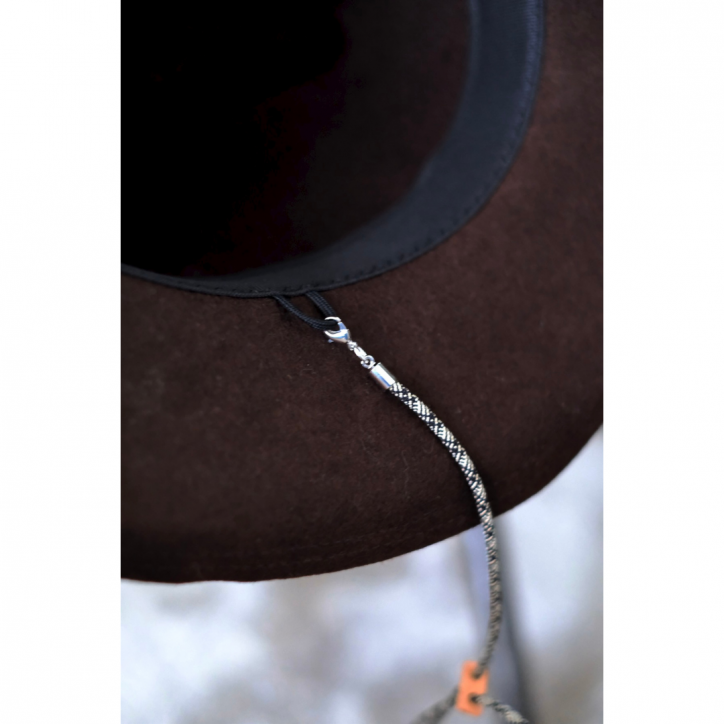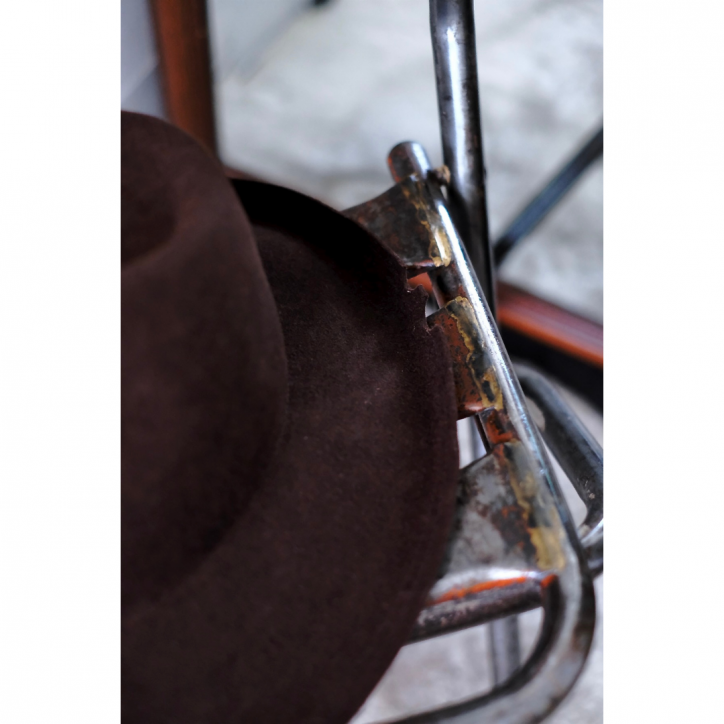 中折れ部分のつまみやブリムのエッジを跳ね上げなど、細部にも職人技の見られる完成度の高い逸品に仕上がっています。