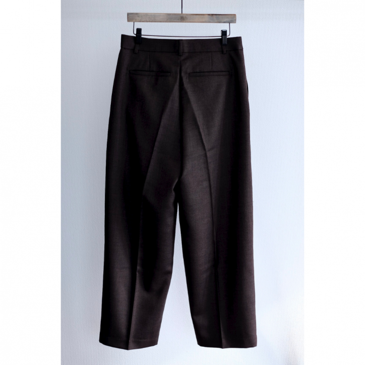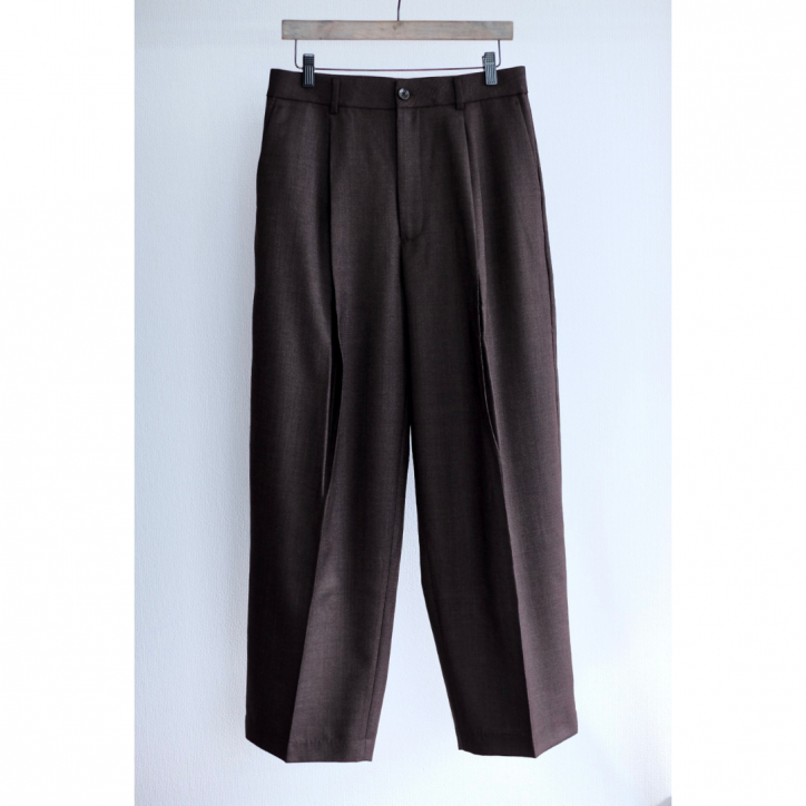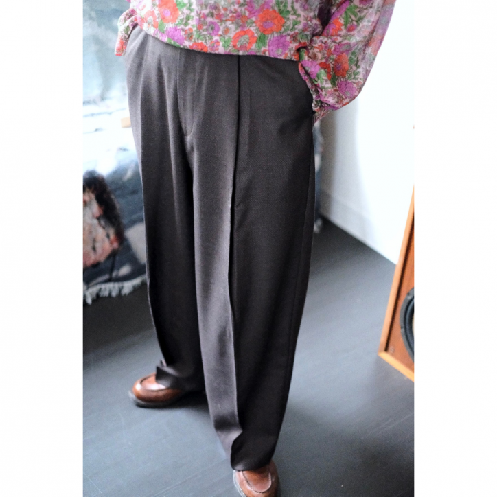 迫力のある生地と独特な大きなタックによってパンツ単体で存在感があるので、シンプルなトップスを持ってくるだけでスタイリングを格上げしてくれる逸品です。