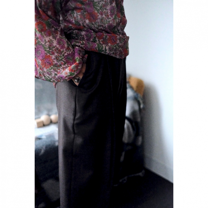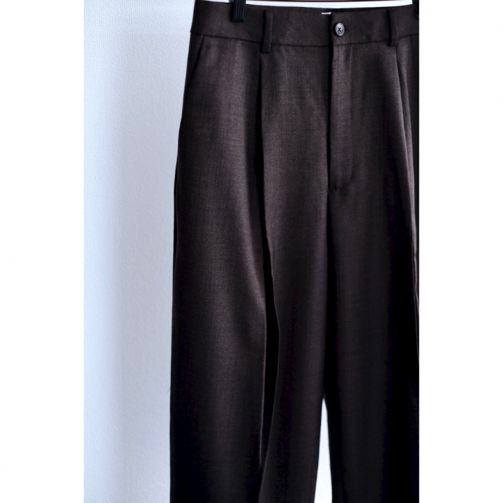 タック分量を大きく緩やかに取った1タックのワイドトラウザー。