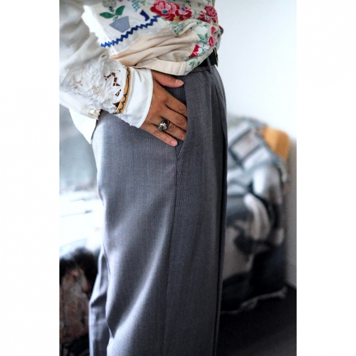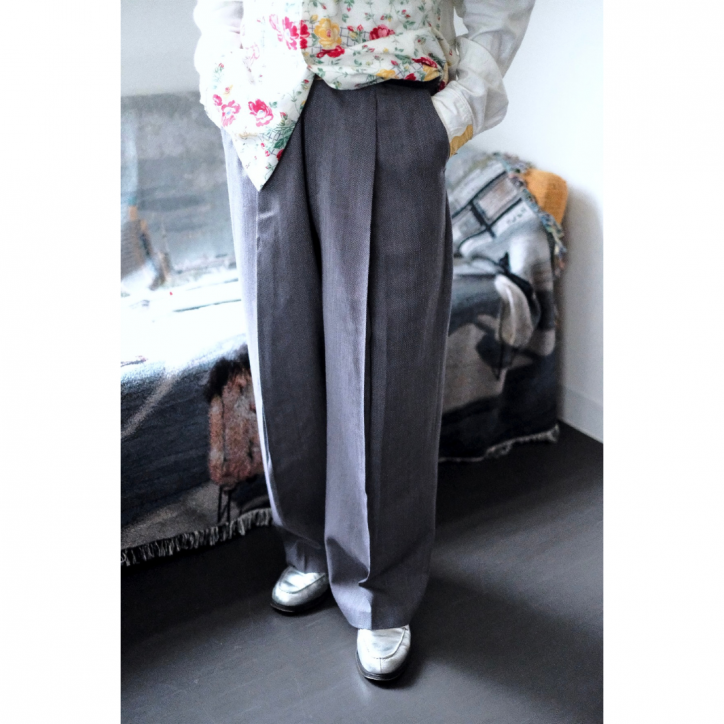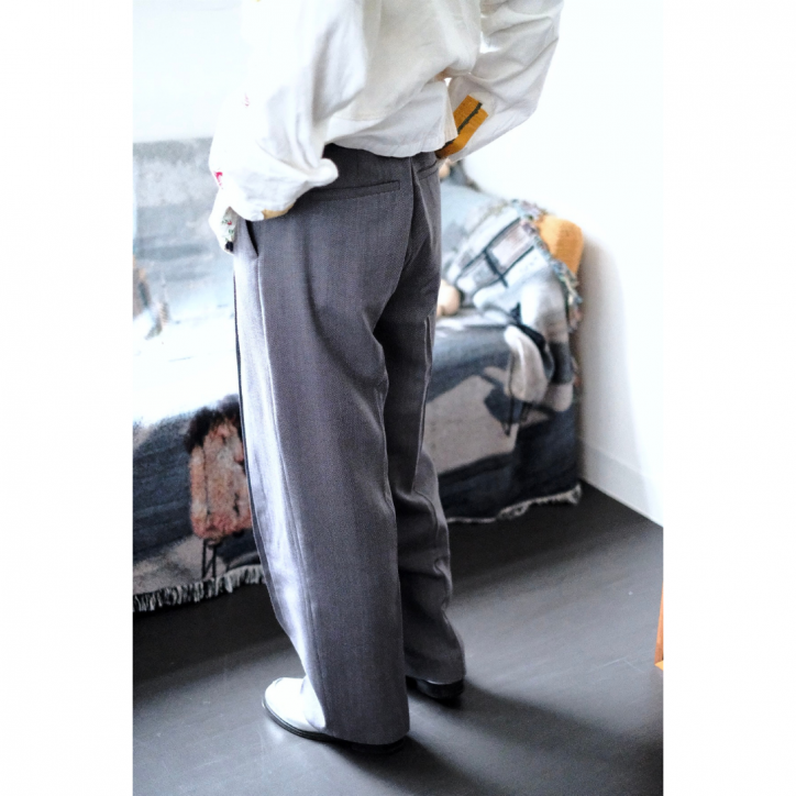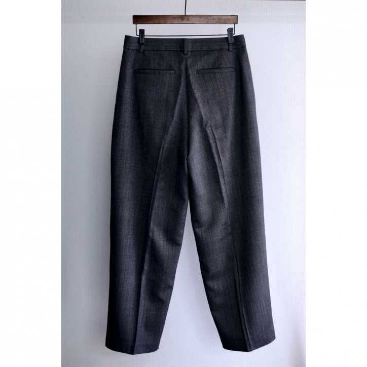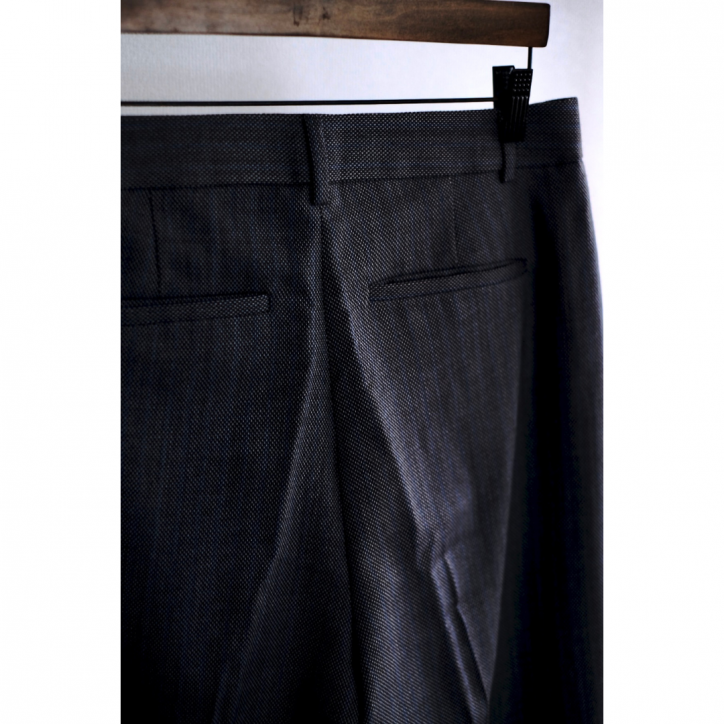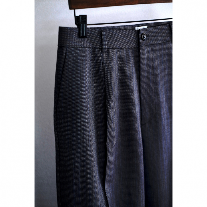 迫力のある生地と独特な大きなタックによってパンツ単体で存在感があるので、シンプルなトップスを持ってくるだけでスタイリングを格上げしてくれる逸品です。