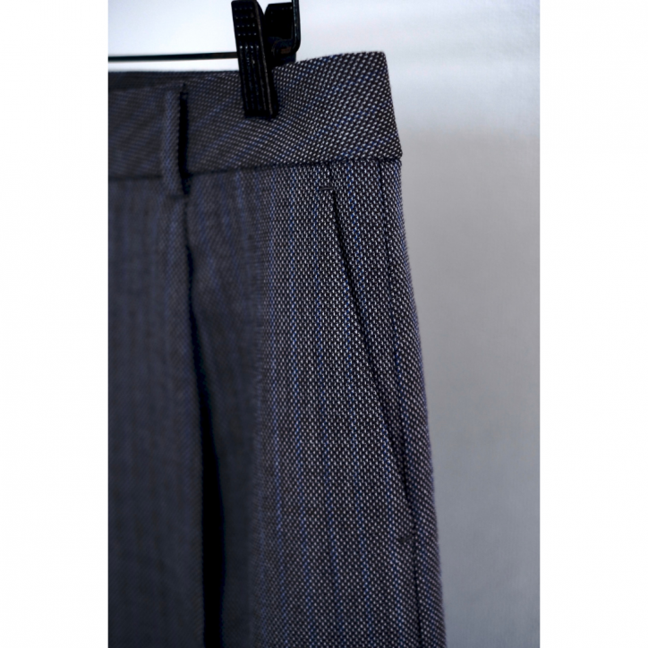 タック分量を大きく緩やかに取った1タックのワイドトラウザー。