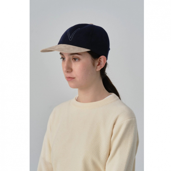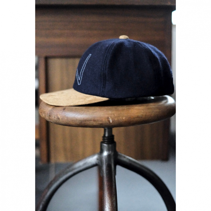 ツバにはリアルな質感のフェイクスエード生地を使用し製作を行なった本作。