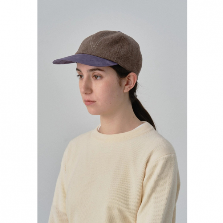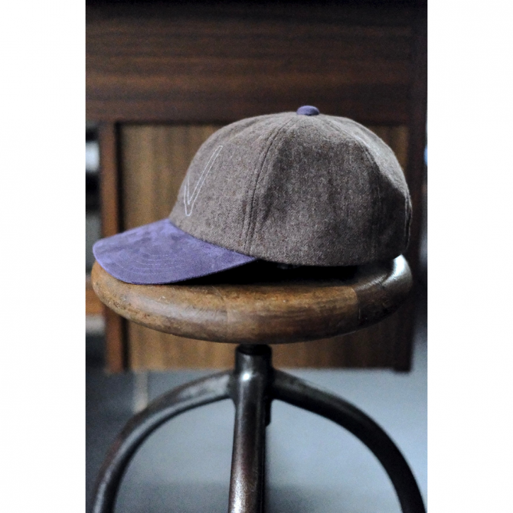ツバにはリアルな質感のフェイクスエード生地を使用し製作を行なった本作。