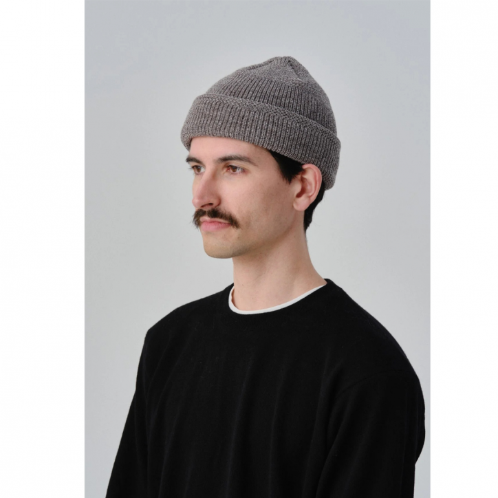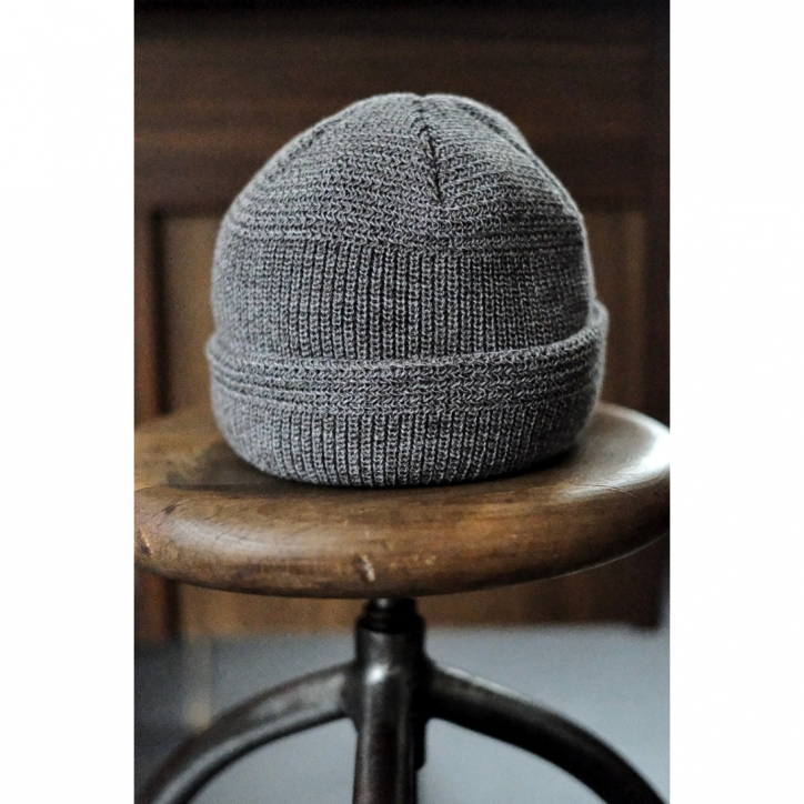 メリノウールとファインメリノウールをブレンドしたハイグレード糸で編み立てた、程良い光沢感と弾力がありソフトな肌触りのニット帽。