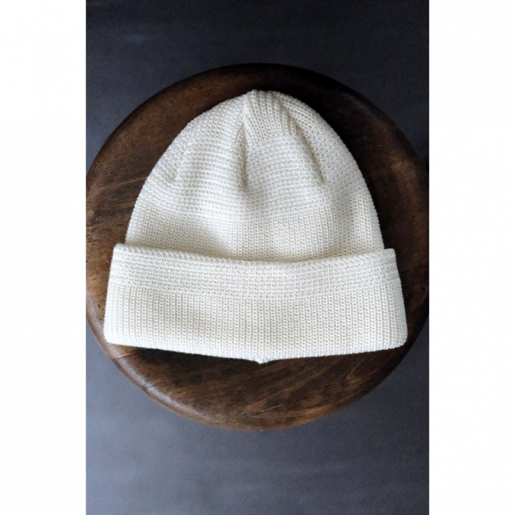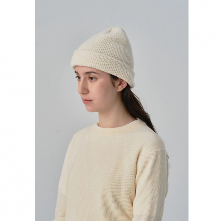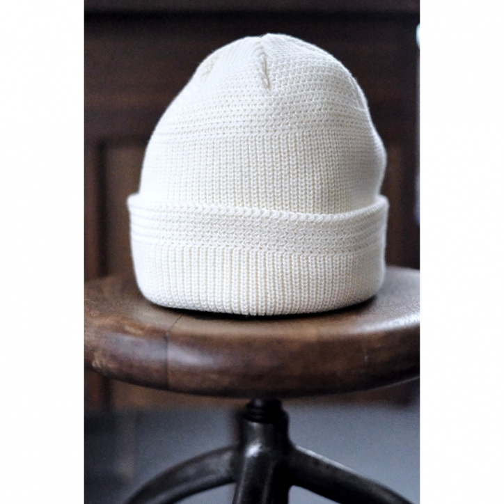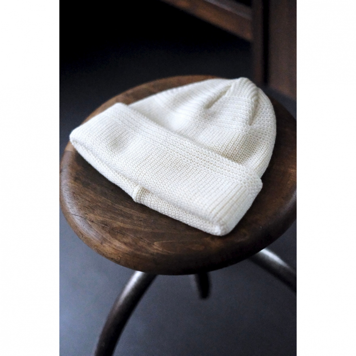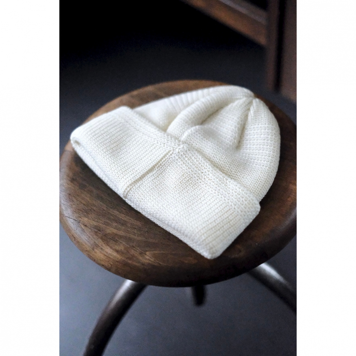 メリノウールとファインメリノウールをブレンドしたハイグレード糸で編み立てた、程良い光沢感と弾力がありソフトな肌触りのニット帽。