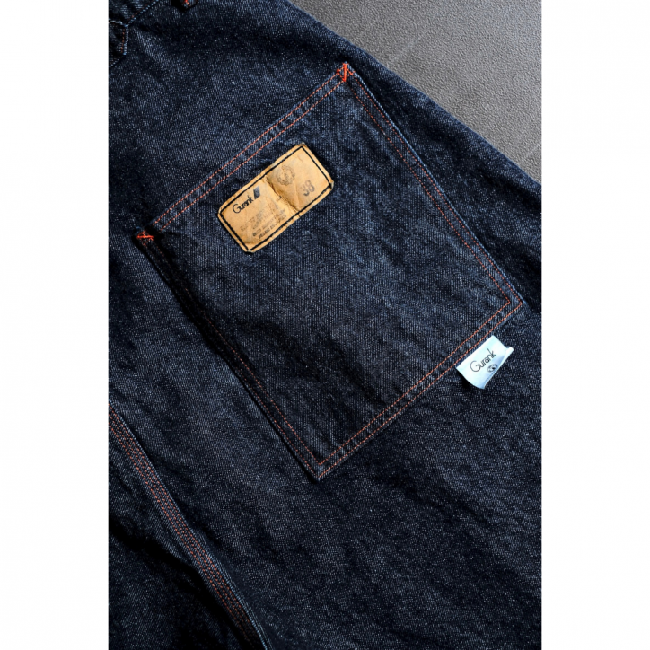 USA製のリーバイスから着想を得た、腰裏の綿タグやヴィンテージのストア系のデニムを彷彿とさせる鮮やかなオレンジのステッチ、使い込む度に味の出るオリジナルの鉄製のタックボタンなど、ヴィンテージ好きにはたまらない仕様が満載。