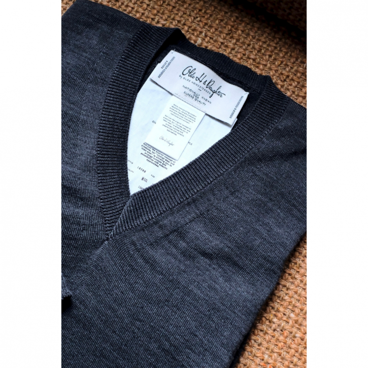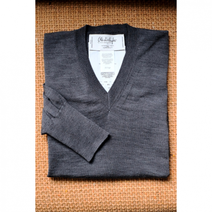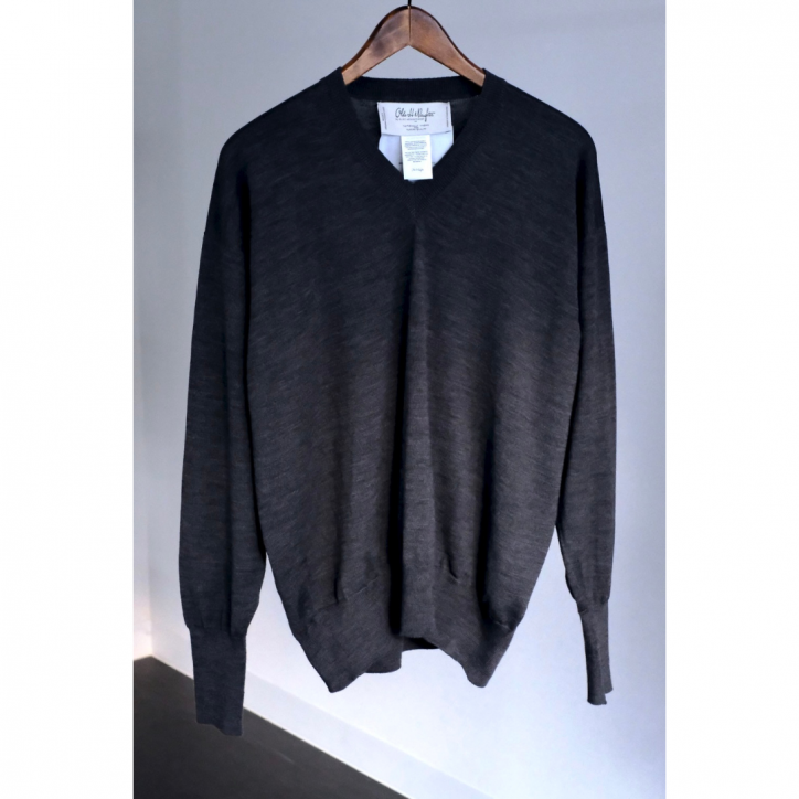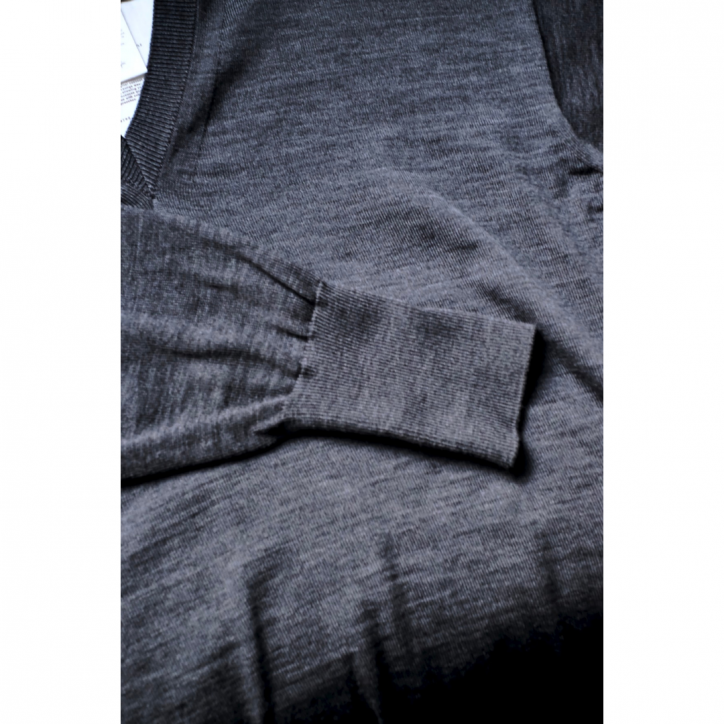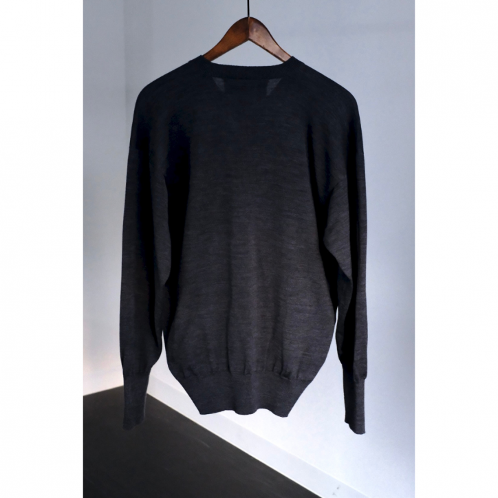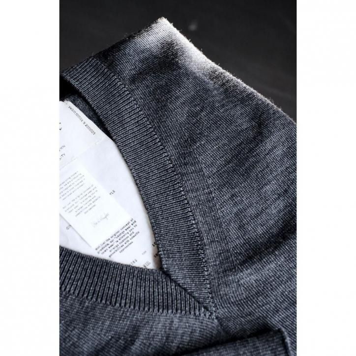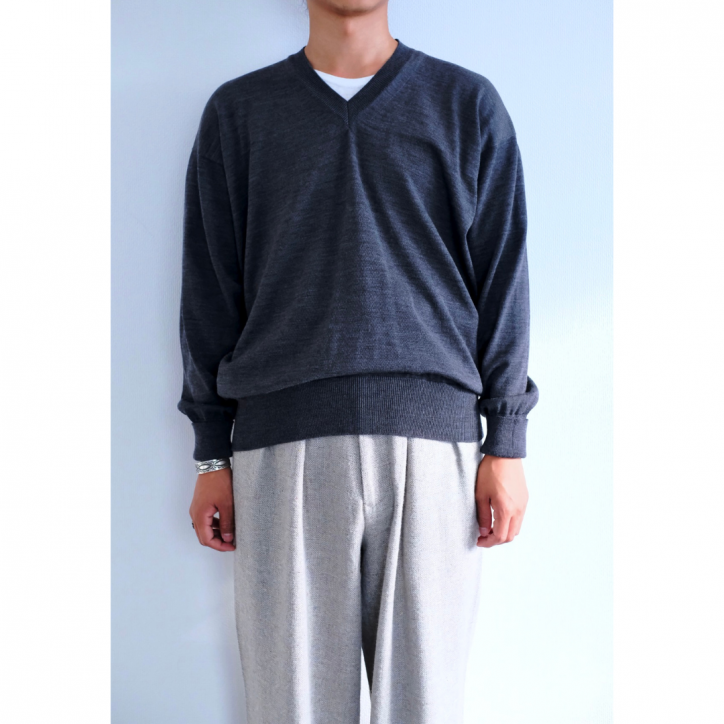 チクチク感皆無の上質な梳毛ウール100%のVネックニット。