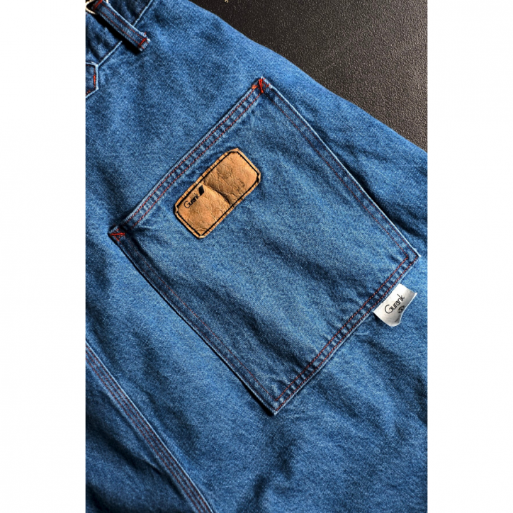 50年代のBIG YANKのペインターパンツをモディファイドした13ozのワイドシルエットのブリーチ加工デニム。