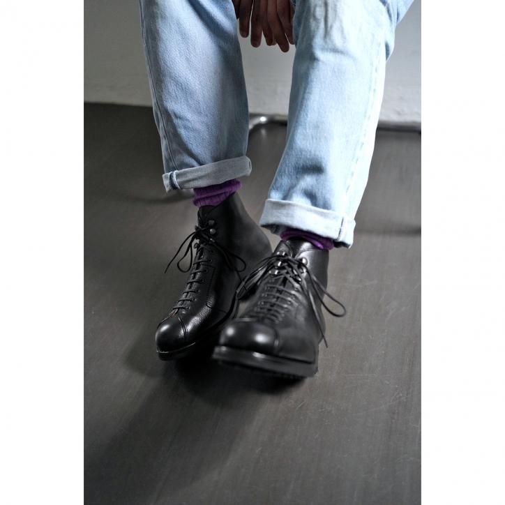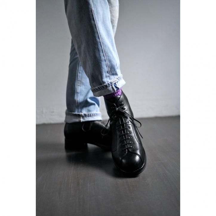 その上で、無骨な見た目からは想像できないくらいに履くとエレガントで少し鼻面が細いトゥラインが美しい。