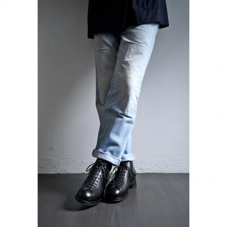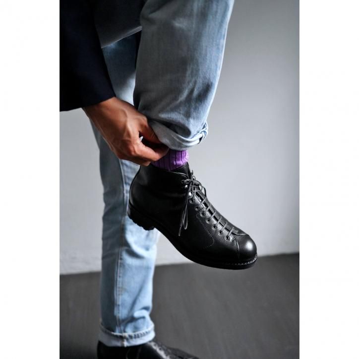 接着面が少なくコバからビブラムまで通しでステッチをかけているので 柔らかくしなやかな履き心地。土踏まずのリフトアップもしっかり足に吸い付くよう。