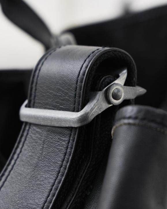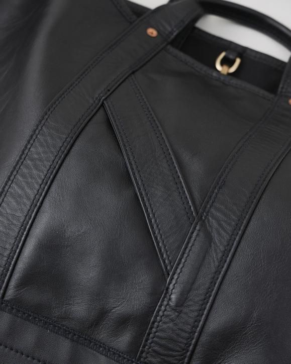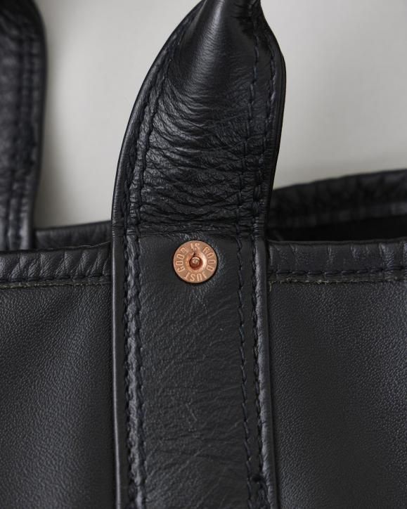 "1920s〜1950sに登場した米国のツールバッグからインスピレーションを得てデザインしたショルダーストラップ付きトートバッグ。素材には無骨な表情のホースレザーを採用。マチの折り込みのリベット留めなど当時の面影を残しながらも、細部のディテールを現代的にアップデートしています"