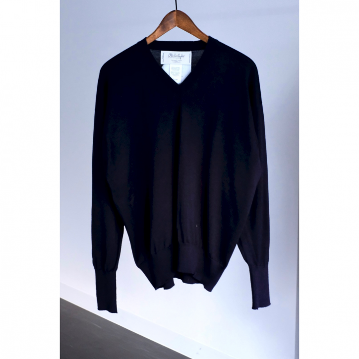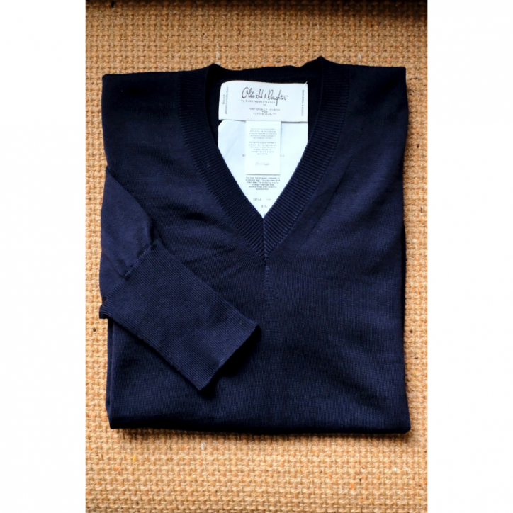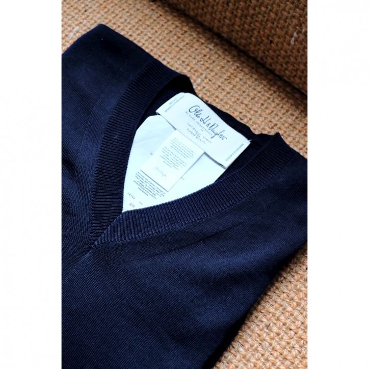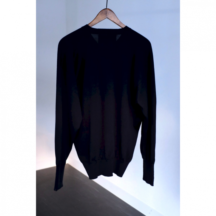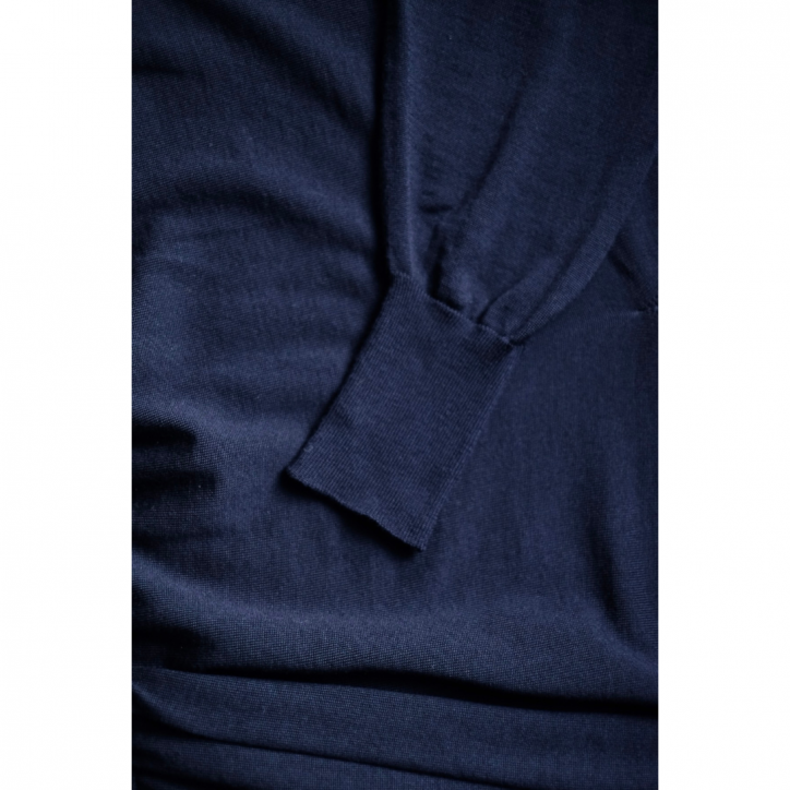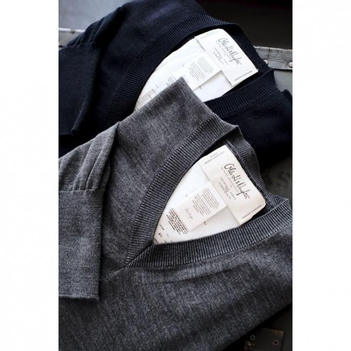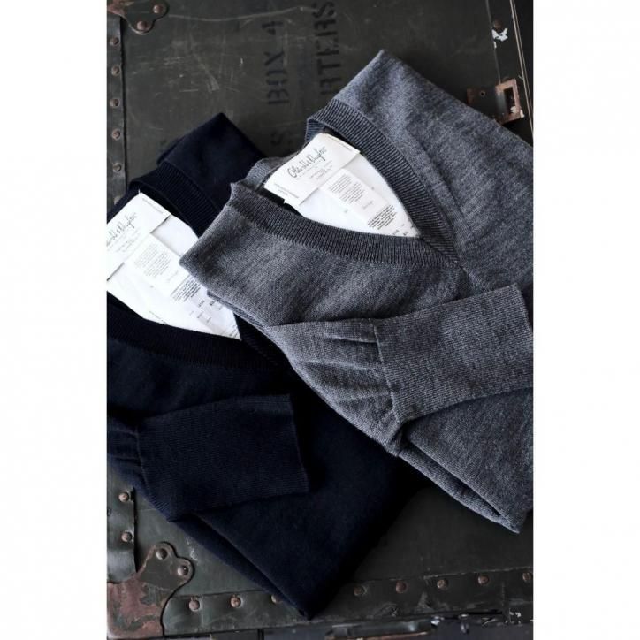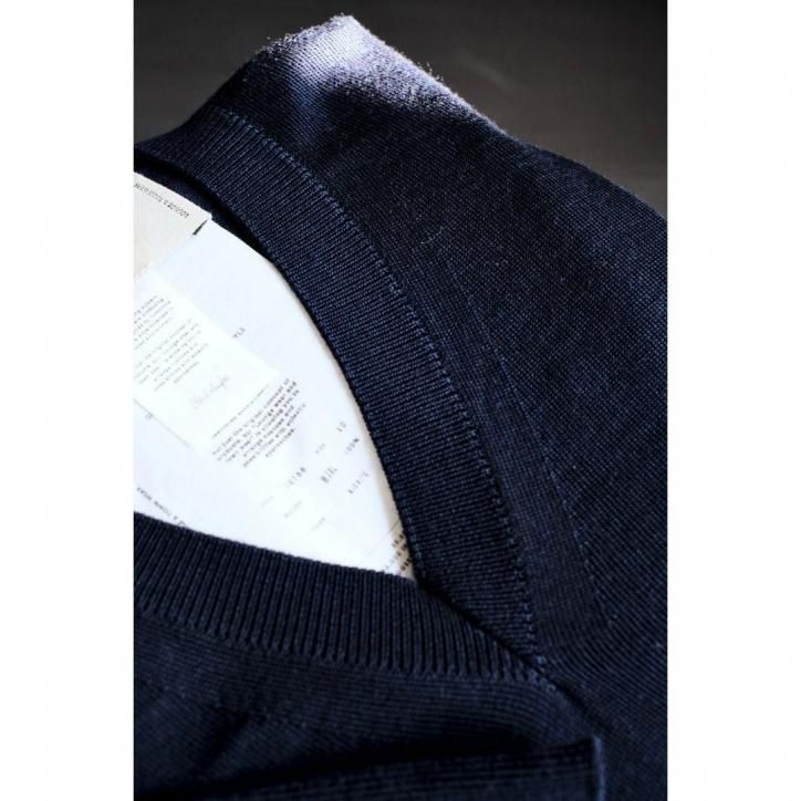 チクチク感皆無の上質な梳毛ウール100%のVネックニット。
