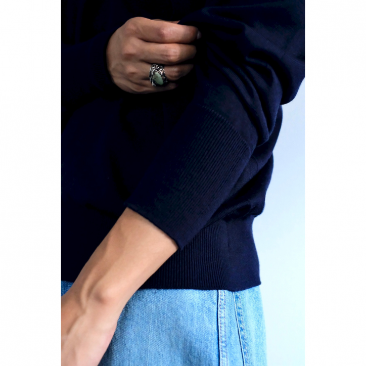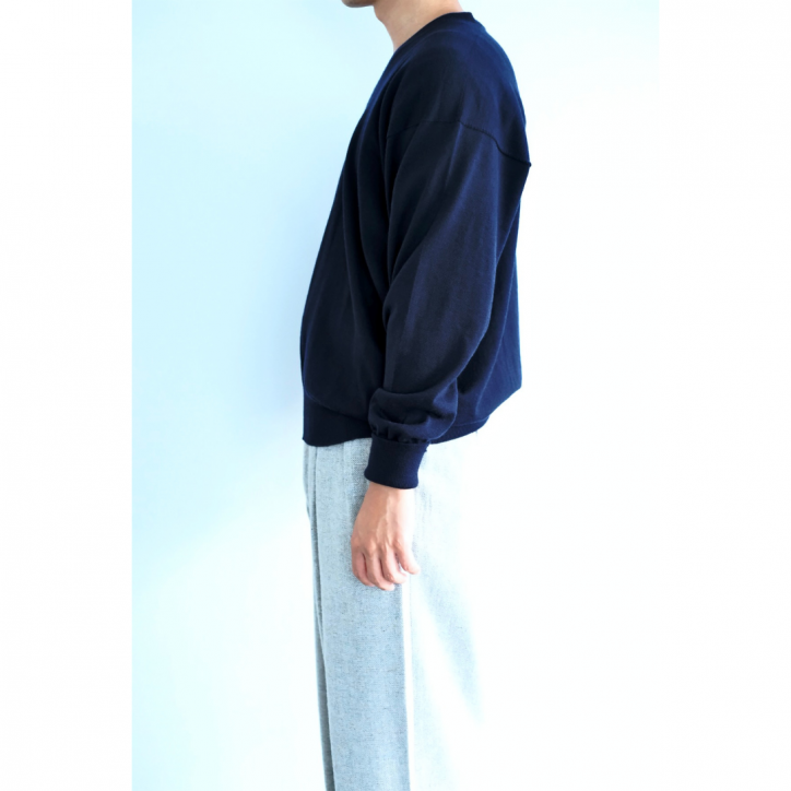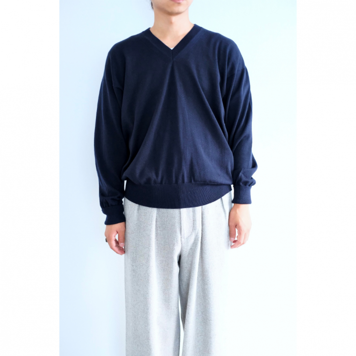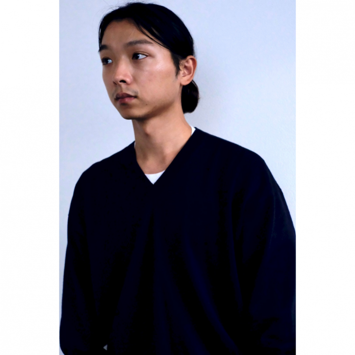 Vネックの深さが浅すぎず深すぎずのちょうど良いバランス感でスタイリングに程よい抜け感を演出してくれます。インナーがタンクトップでも全くいやらしさがなく着れる、Vネックを着たことのない方、抵抗のある方にも自信を持ってオススメできるバランス感があります。