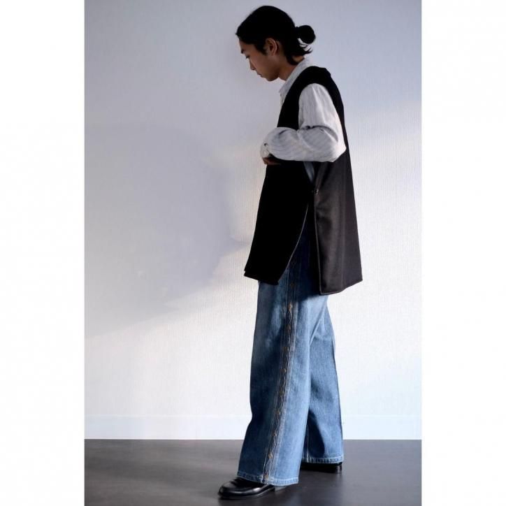 アームホールにゆとりを持たせた設計のため、丈の長いコートやオーバーサイズのスウェットやニットの上からも楽々レイヤード可能。逆に袖が無い分アウターのインナーにも容易に仕込める。