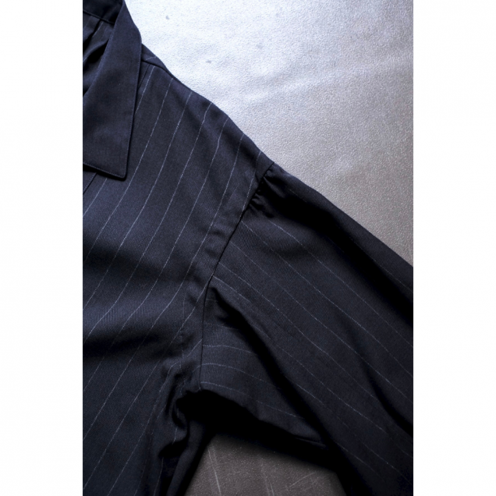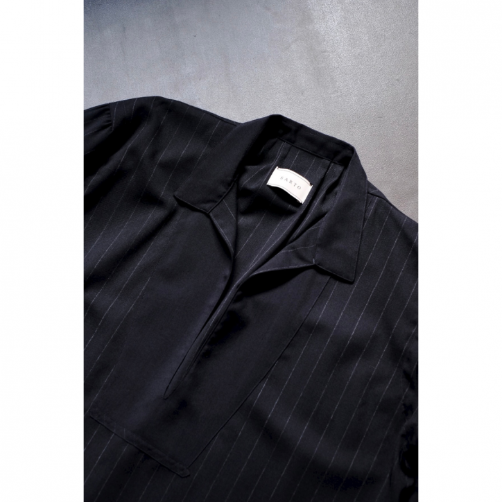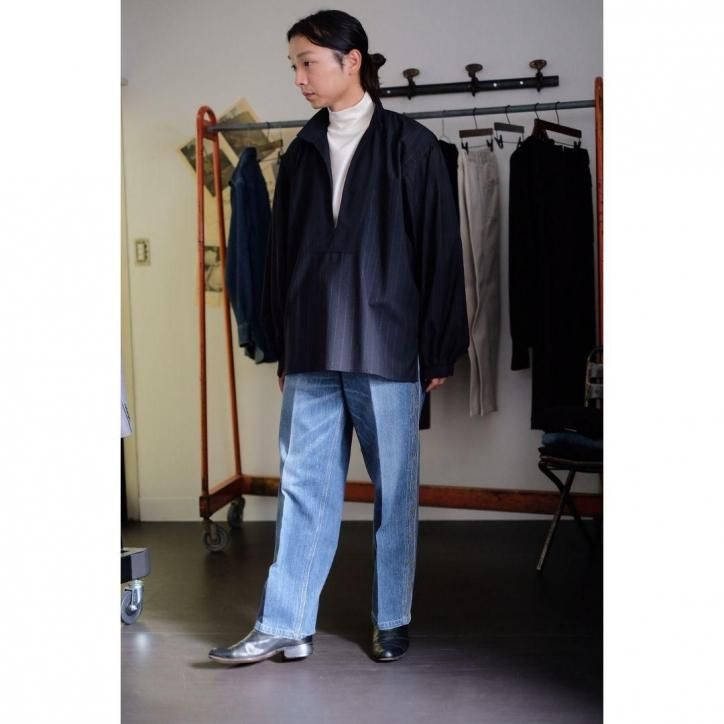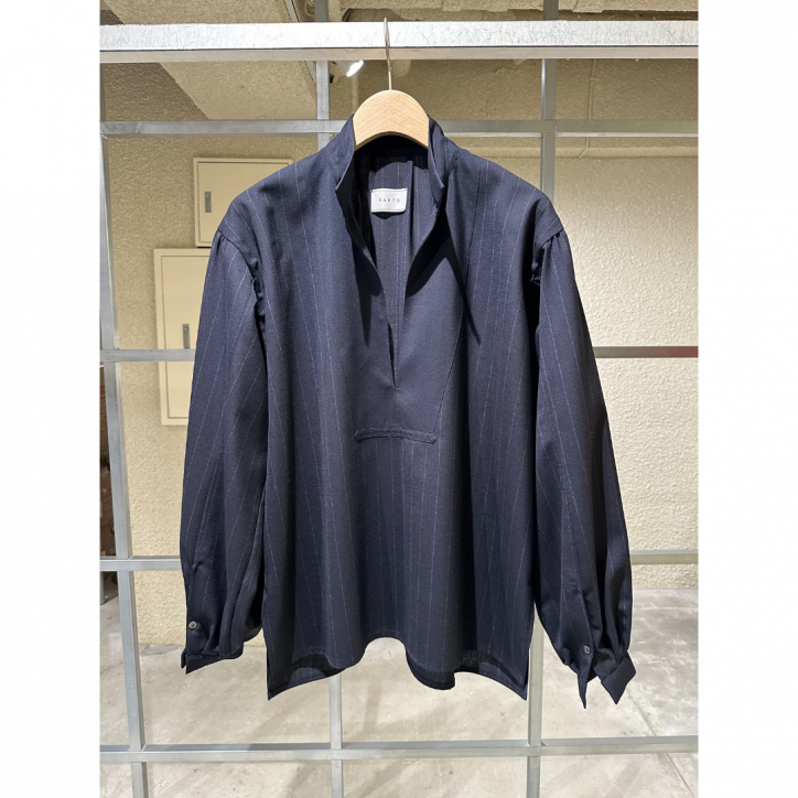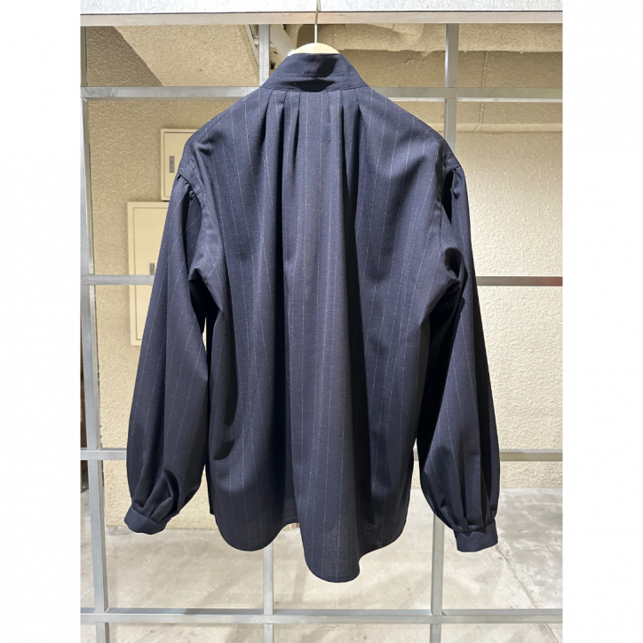 ボリュームのある身幅やアームホール、襟のディティール、袖口のギャザーなどからは、ヴィンテージのスモックシャツを彷彿とさせます。