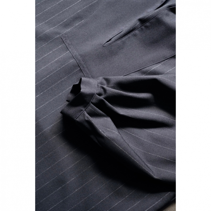 ふわっとしたボリューム感のあるシルエットに反して、素材にはキリッとした印象を受けるドライな強撚ウールを使用。