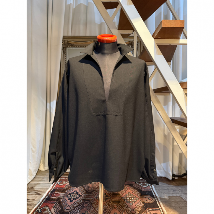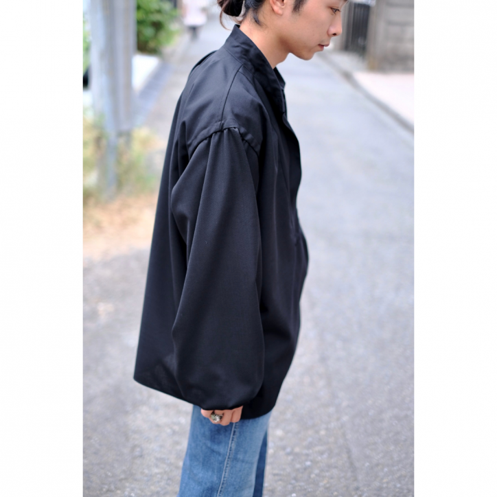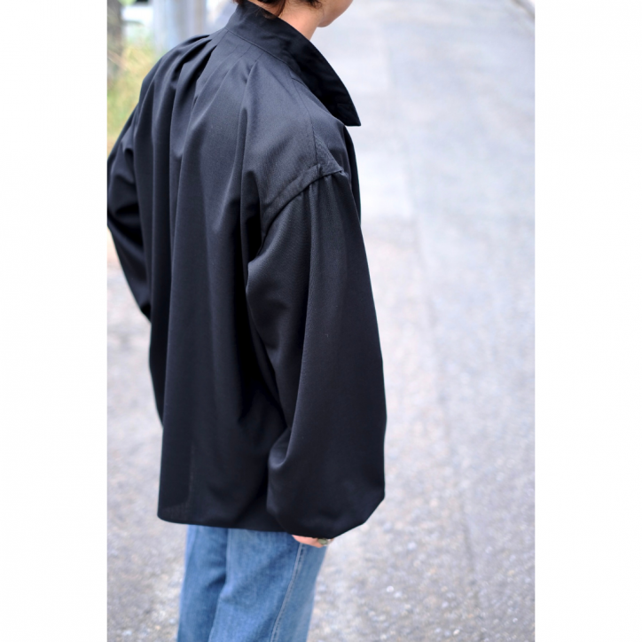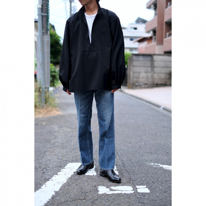 ボリュームのある身幅やアームホール、襟のディティール、袖口のギャザーなどからは、ヴィンテージのスモックシャツを彷彿とさせます。