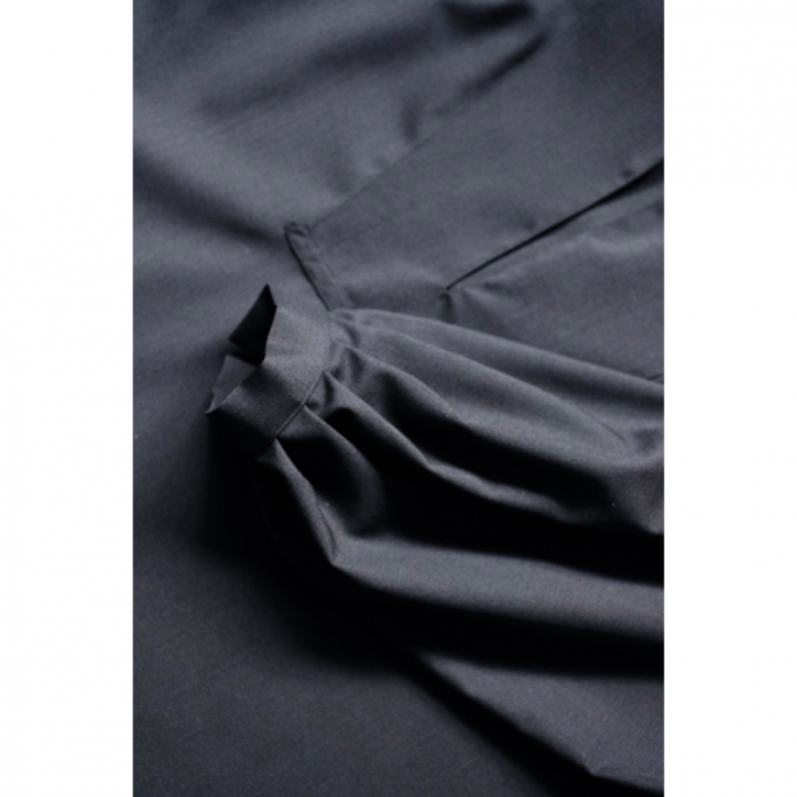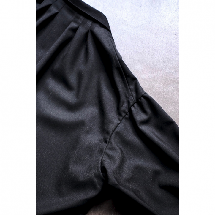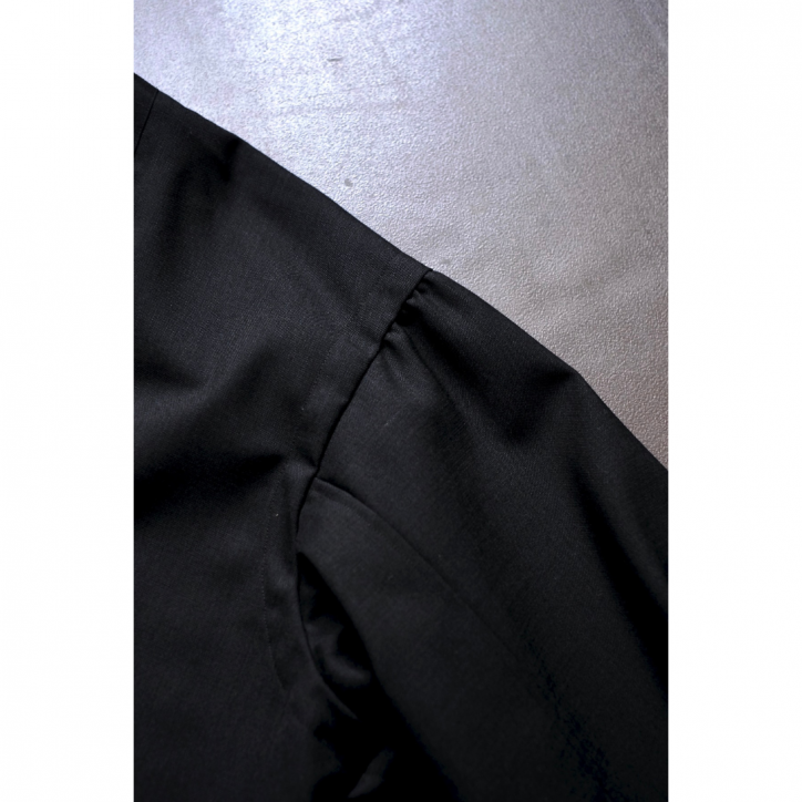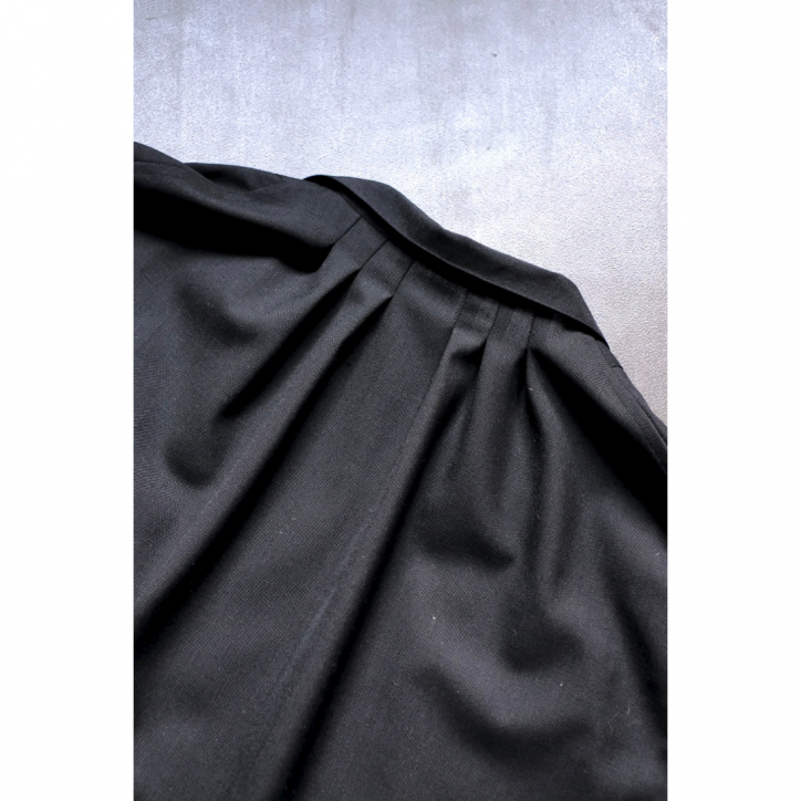 ふわっとしたボリューム感のあるシルエットに反して、素材にはキリッとした印象を受けるドライなウールを使用。