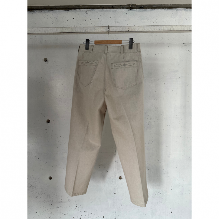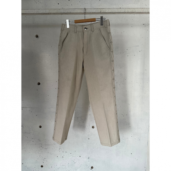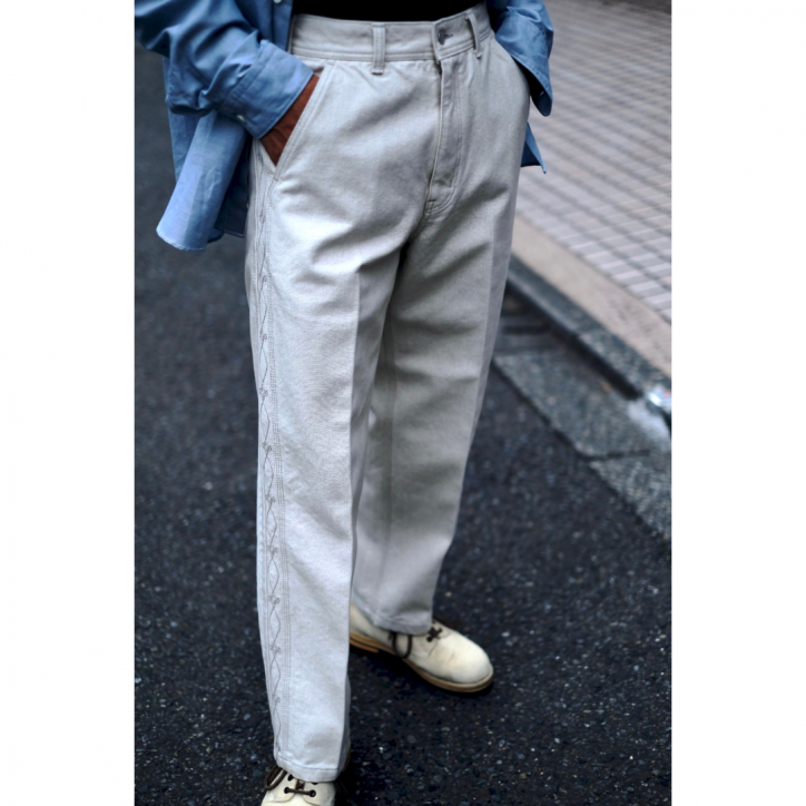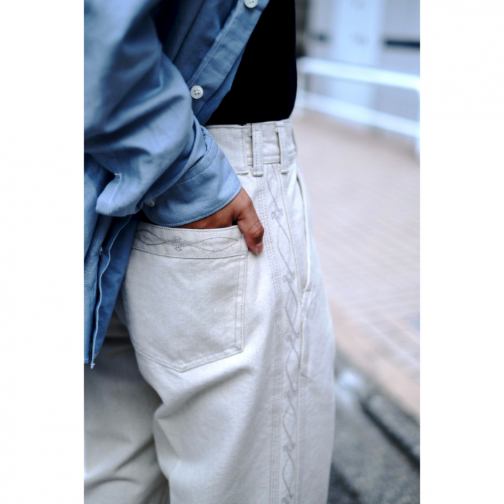 サイドとバックポケットには、ブランドを象徴するウエスタン調のチェーンステッチが施されており、程よいアクセントになっています。