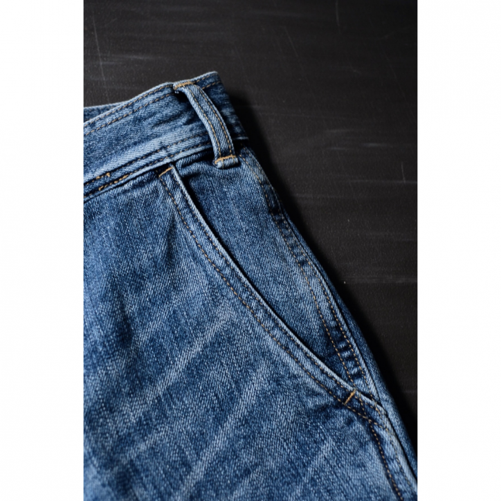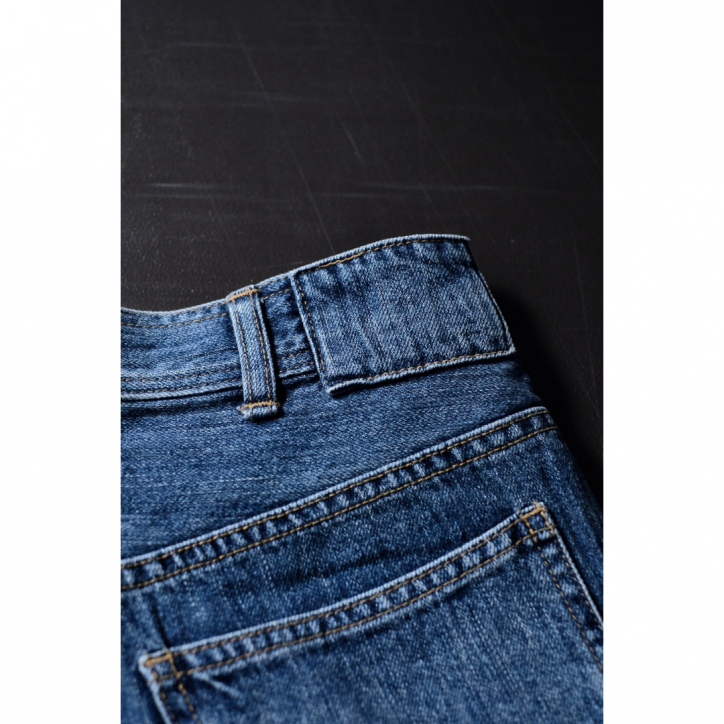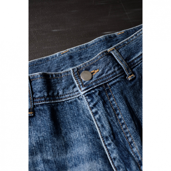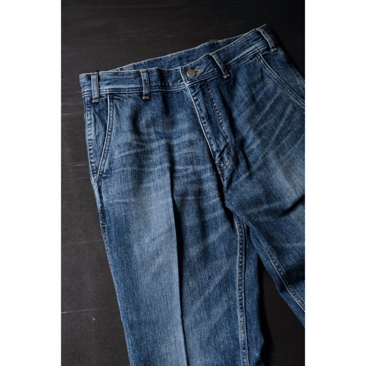 デニムらしい粗野な印象の加工が施されているにも関わらず、
