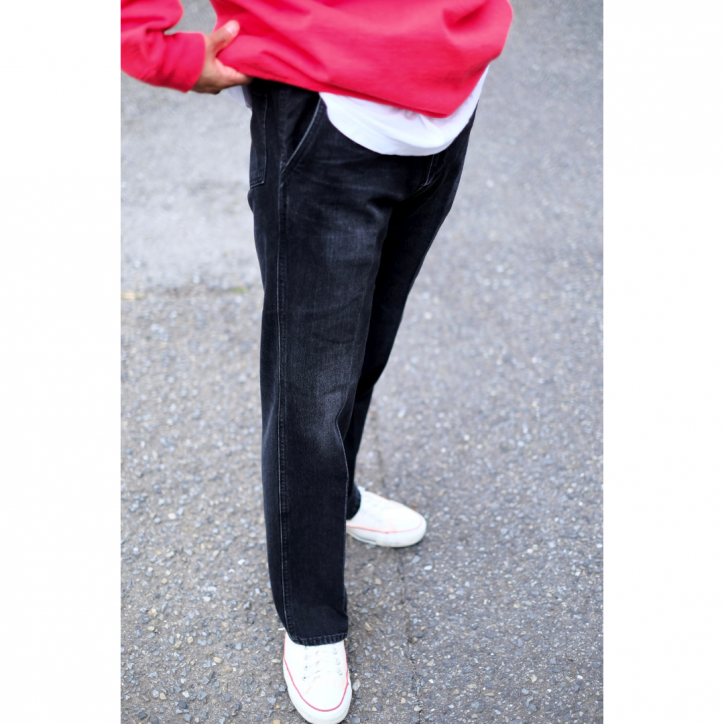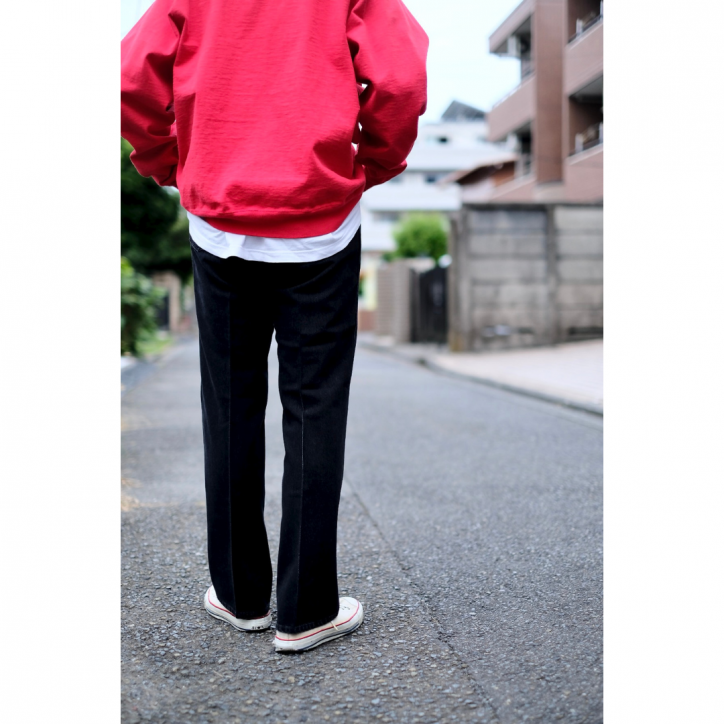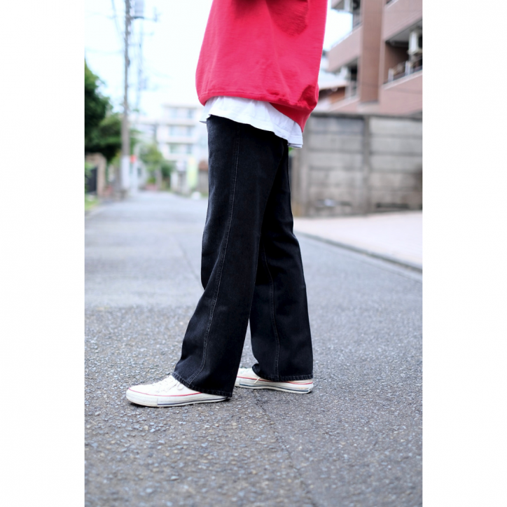 どんなシューズを合わせても裾幅が少し広めなので、綺麗に収めてくれる懐のいいシルエット。