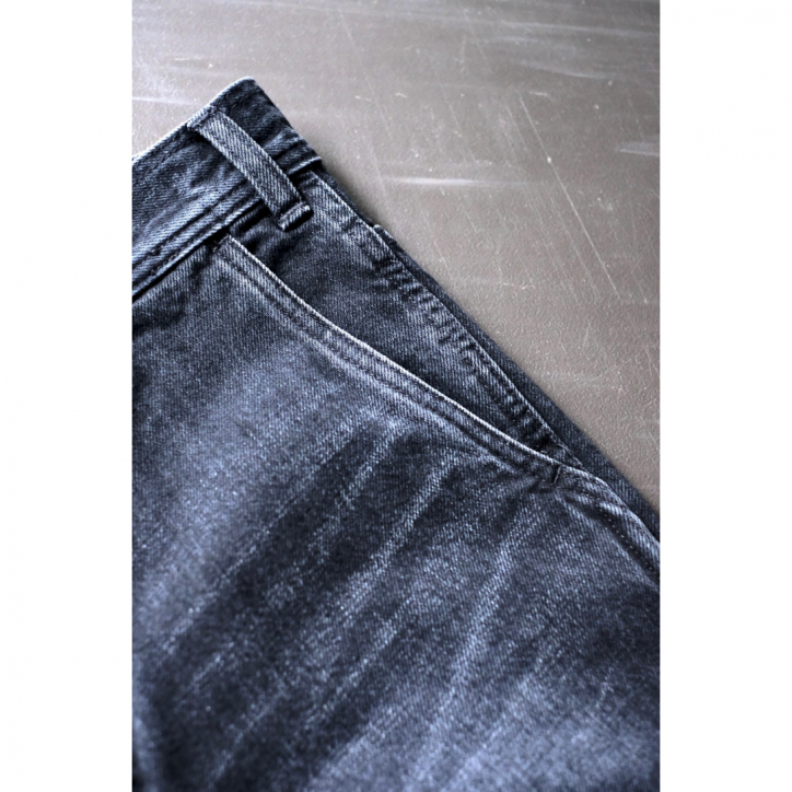 デニムらしい粗野な印象の加工が施されているにも関わらず、