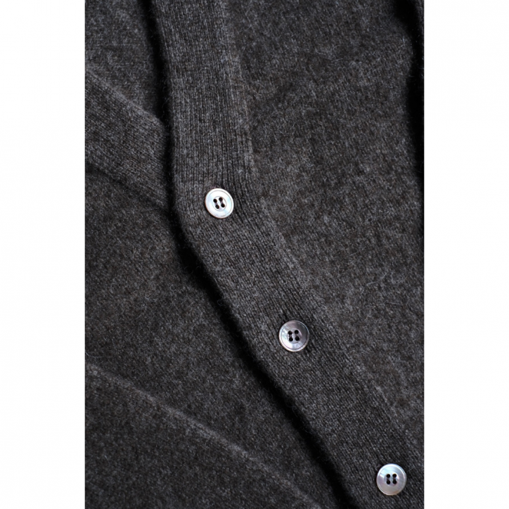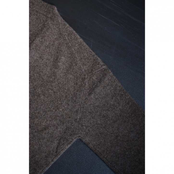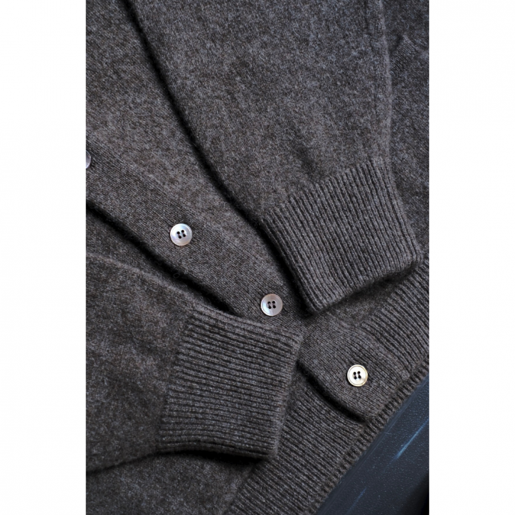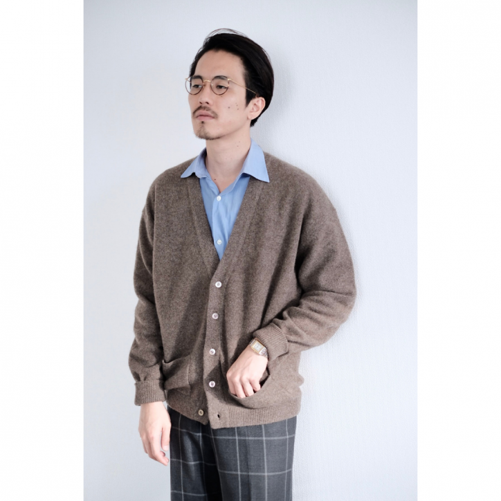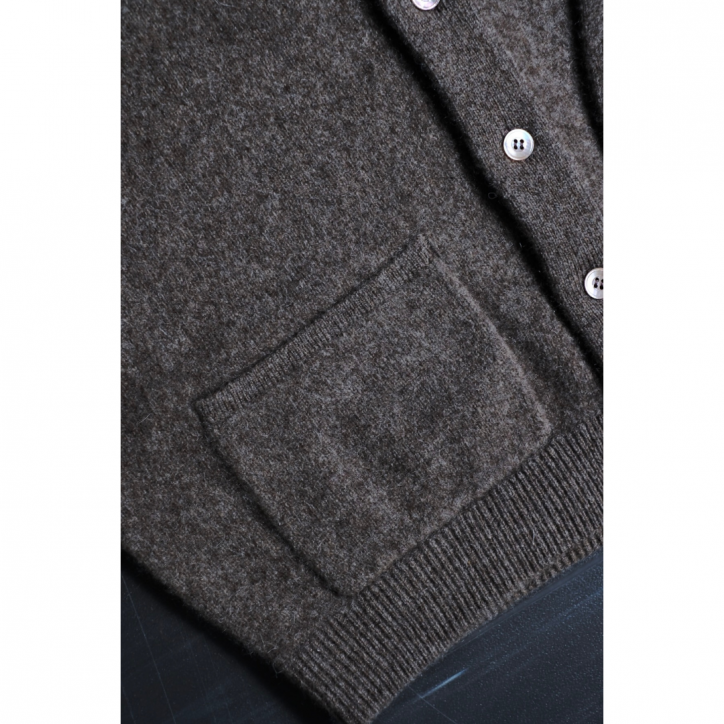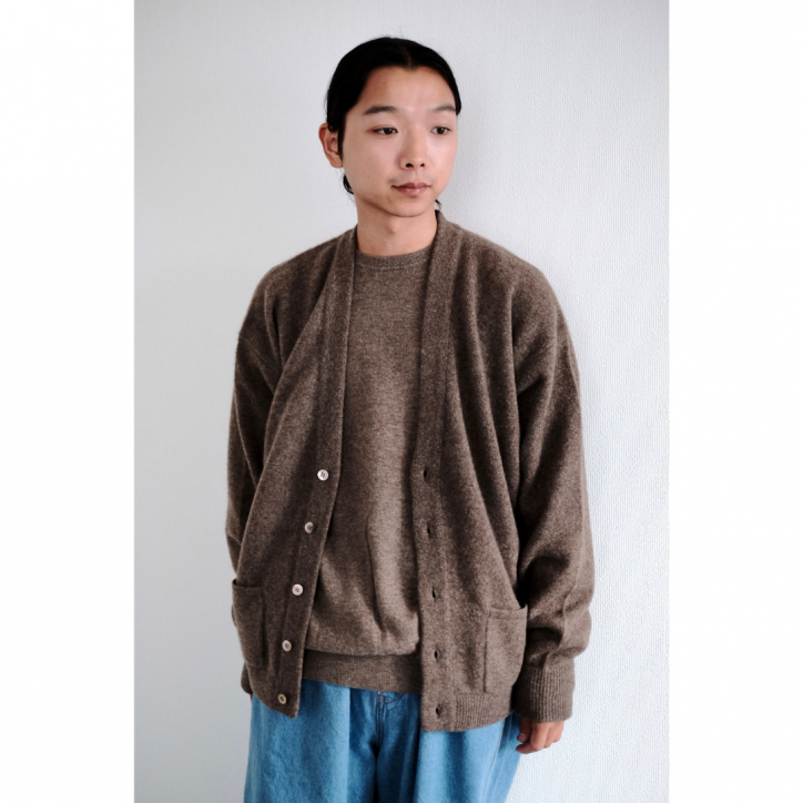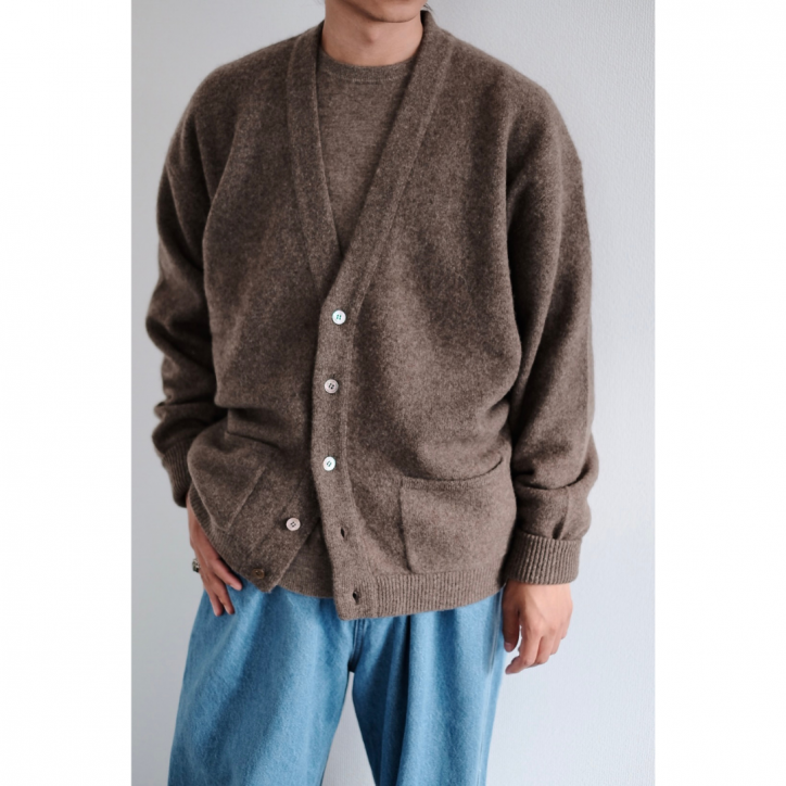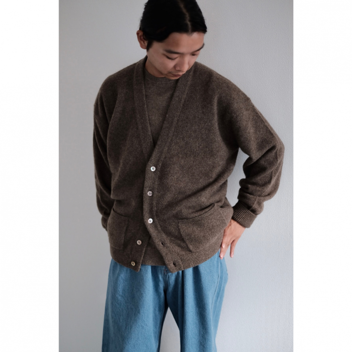 こちらは7ゲージで編まれた、イノセントヤクの上質な素材の良さを存分に味わえるベーシックなカーディガン。