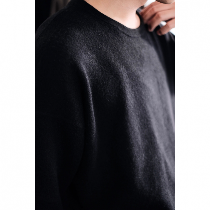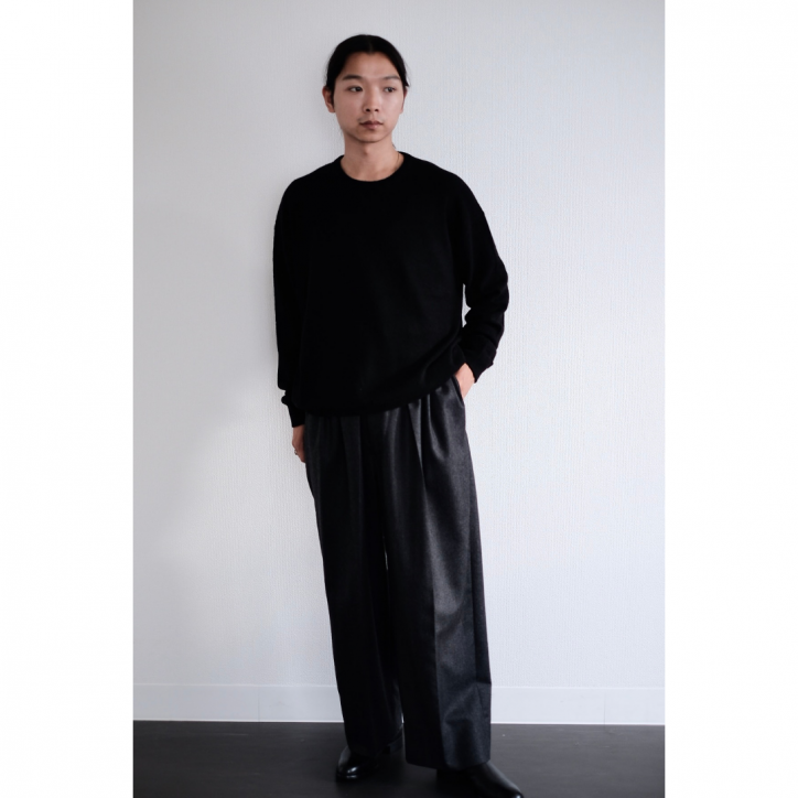 こちらは12ゲージで編まれた、イノセントヤクの上質な素材の良さを存分に味わえるベーシックなクルーネックニット。