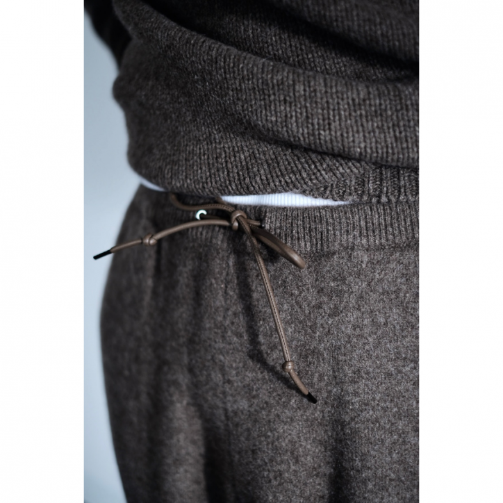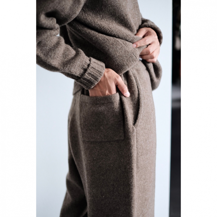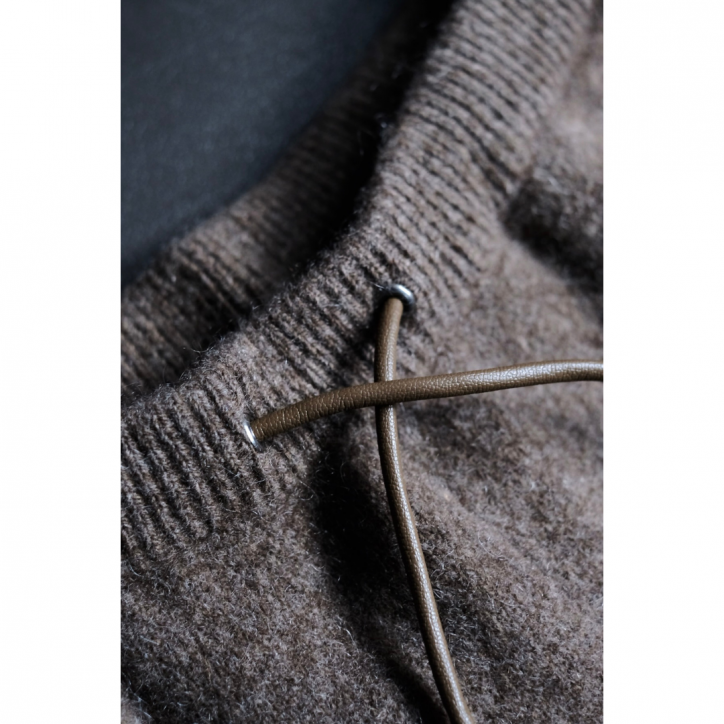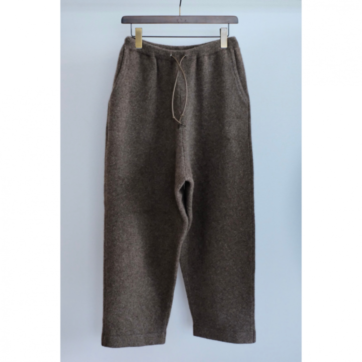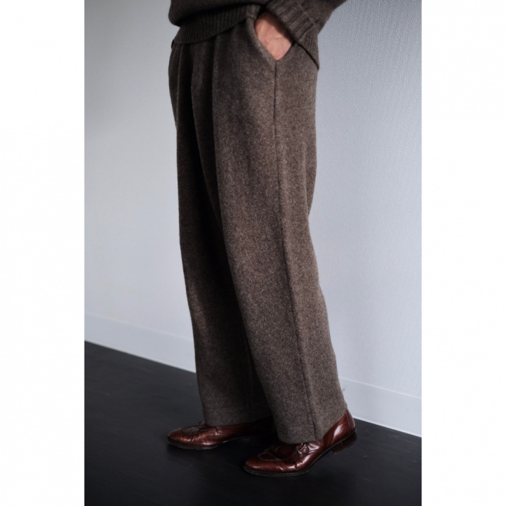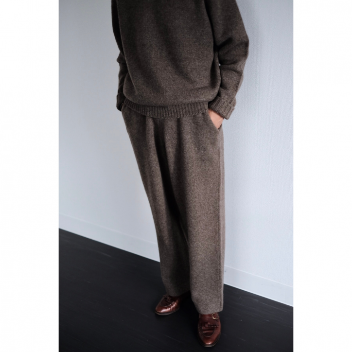 こちらは7ゲージで編まれた、イノセントヤクの上質な素材の良さを存分に味わえる、ワイドテーパードパンツ。