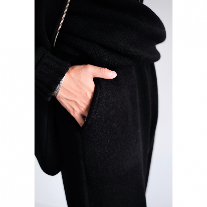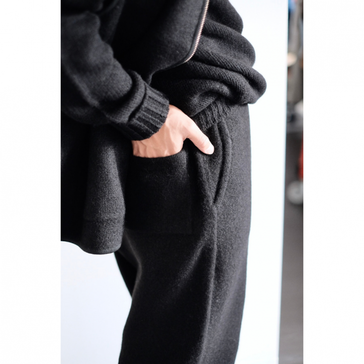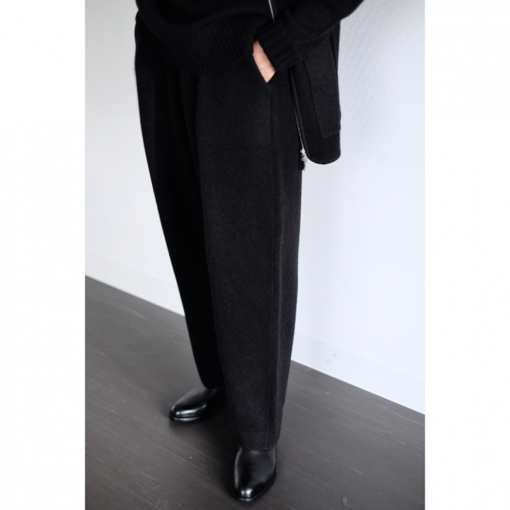 こちらは7ゲージで編まれた、イノセントヤクの上質な素材の良さを存分に味わえる、ワイドテーパードパンツ。