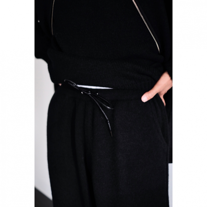 腰回りやワタリが程よくゆとりがあり、膝から裾にかけてわずかにテーパードをかけた、ニットパンツながらすっきりとした印象のシルエット。