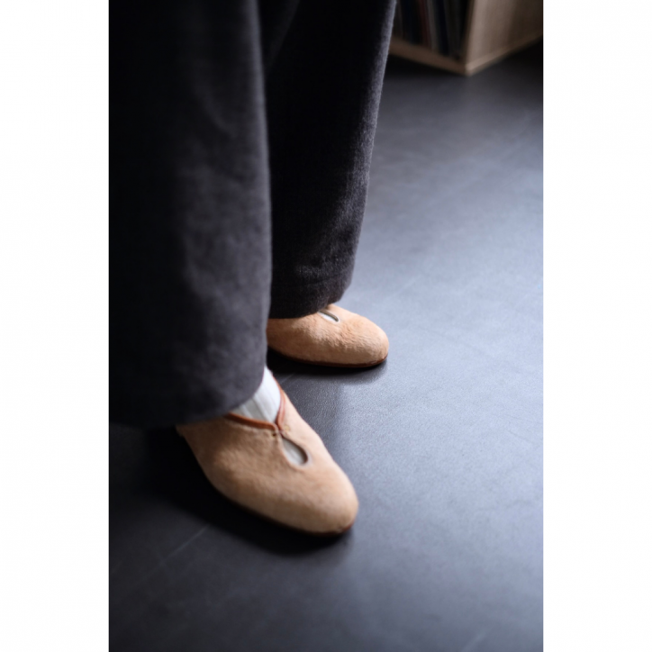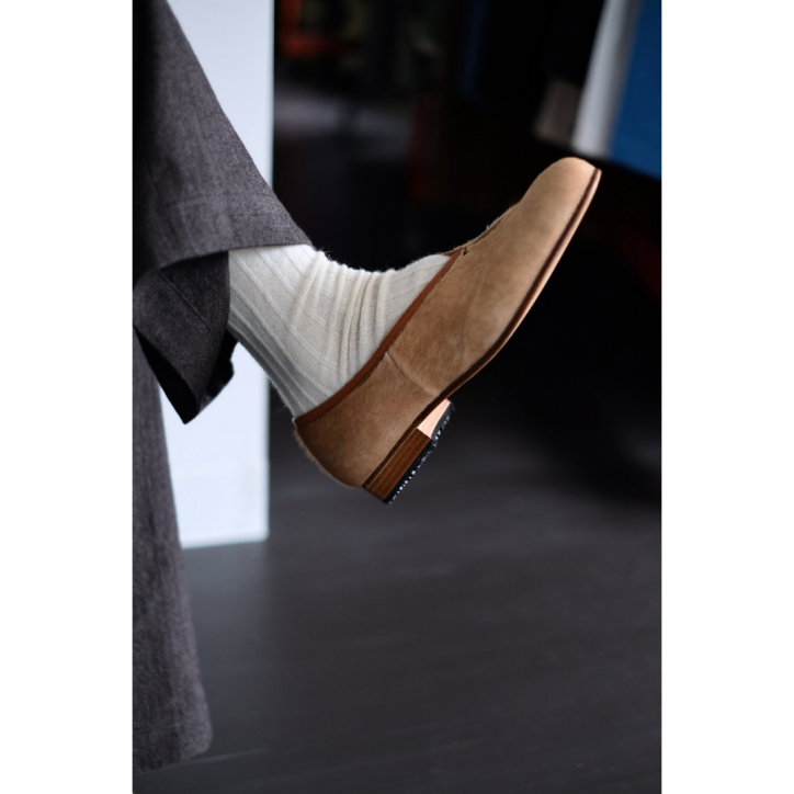 フェミニンな靴に見えますが、男性が履いても自然に取り入れられるような仕上げを目指して作られたという通り、素材やディティールはどこか朴訥として素敵です。