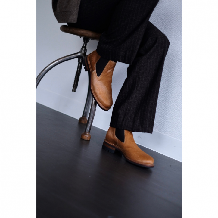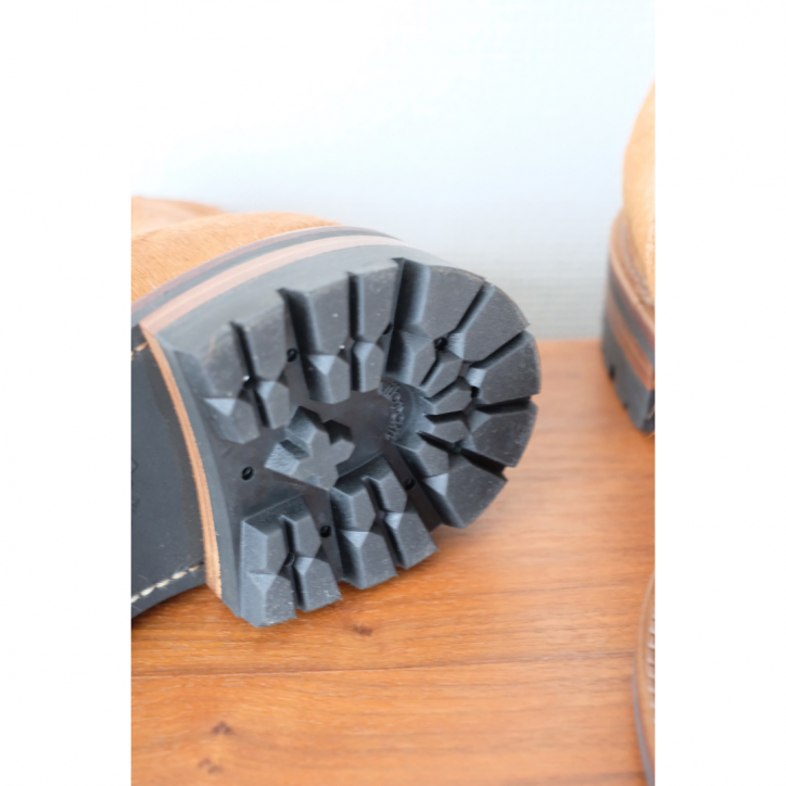 高級絨毯みたいな美しいアッパーに対して、どう見ても丈夫なソールがついている、というギャップに惹かれたブーツ。