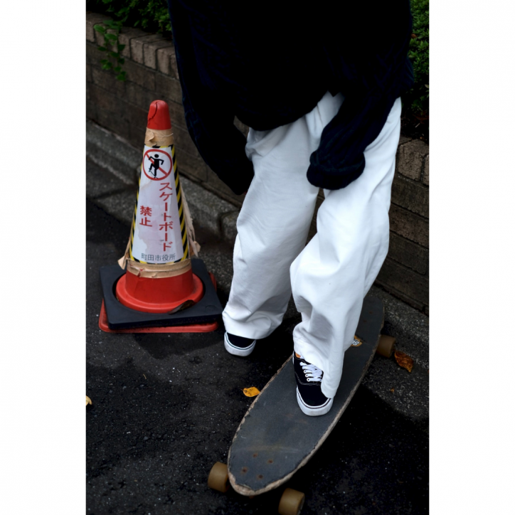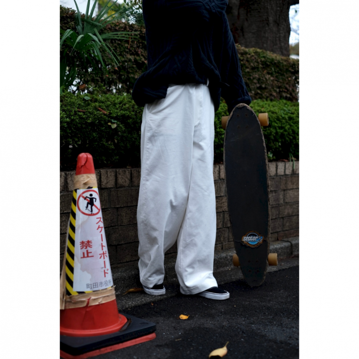 ワークパンツはとんでもなく大きいウエストのバギーシルエット。本当にストンとしたストレート。土管履いてるみたいな、土管がドカンな感じです。すいません。