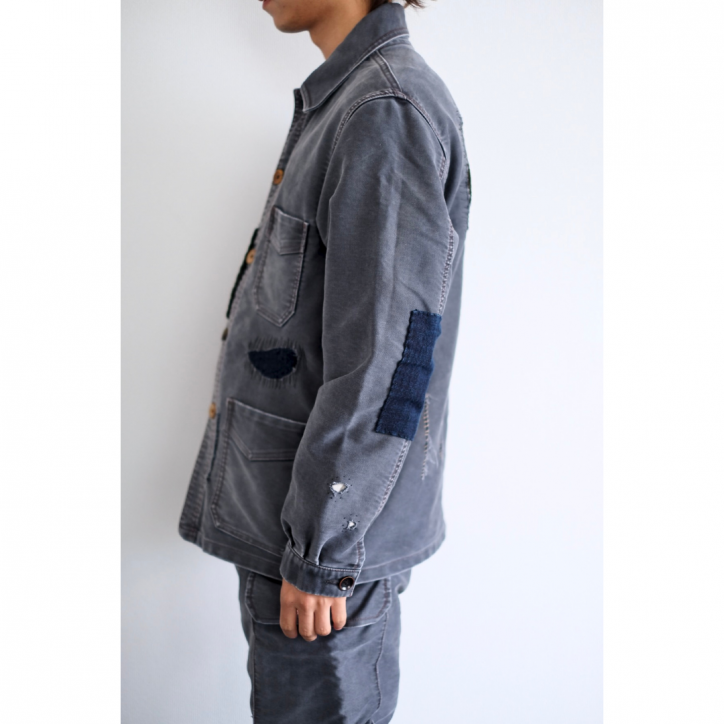 今回の別注では、フレンチのワークジャケットとフレンチのm-47をベースにジャケットとカーゴパンツを製作してもらいました。