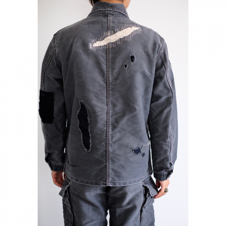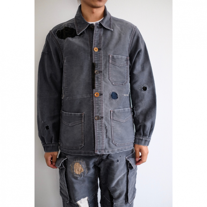 今回の別注では、フレンチのワークジャケットとフレンチのm-47をベースにジャケットとカーゴパンツを製作してもらいました。