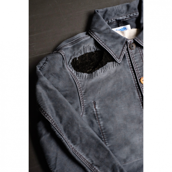 モールスキンは当時からかなり高価で希少な素材、それ故、所有者は何度も補修しながら大切に着ていた歴史があります。