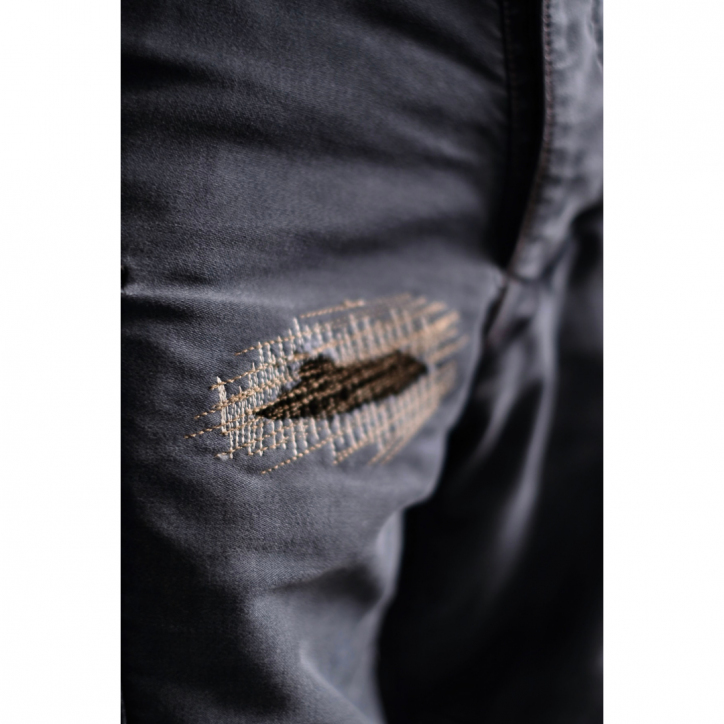 好きな部分はピーチ加工の毛羽立ちが絶妙で上品な光沢があるのにも関わらず、引き裂きや擦り切れに対してかなりの強度を兼ね備えている点です。