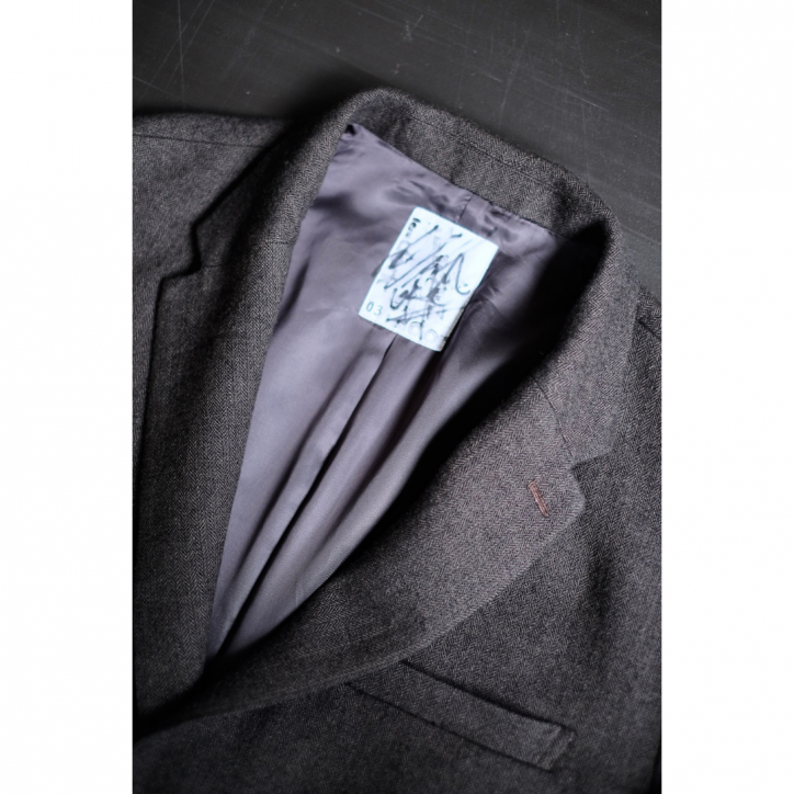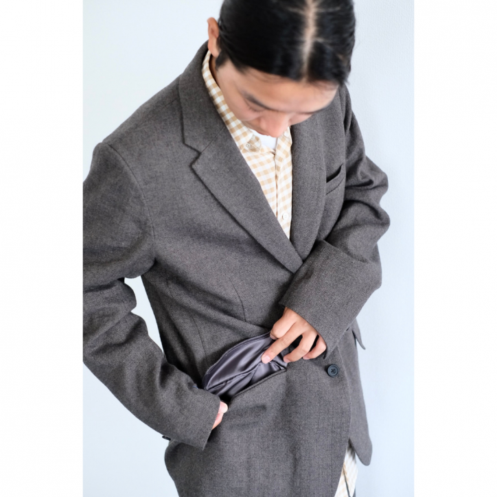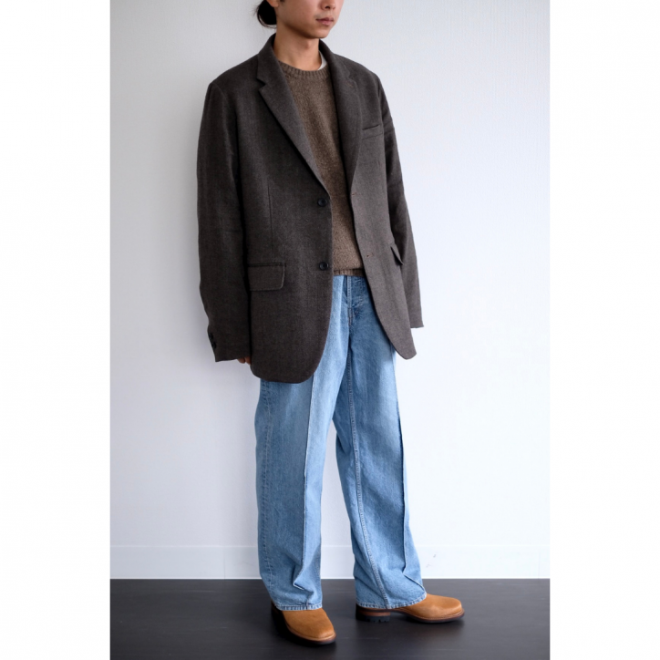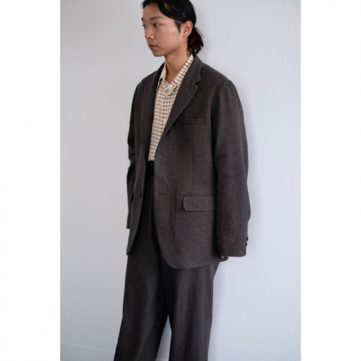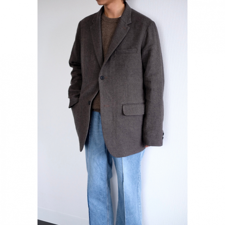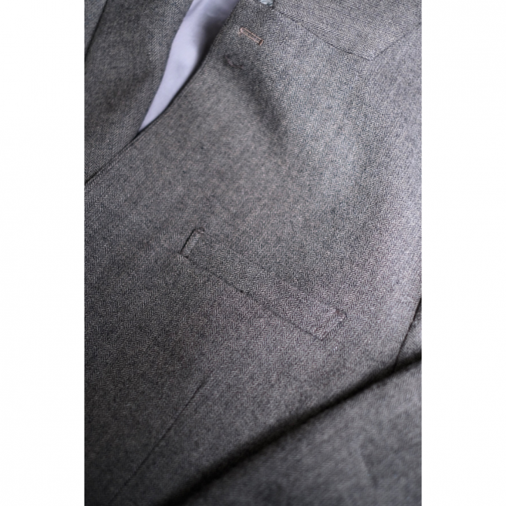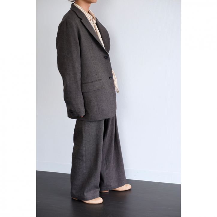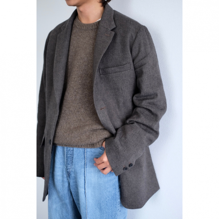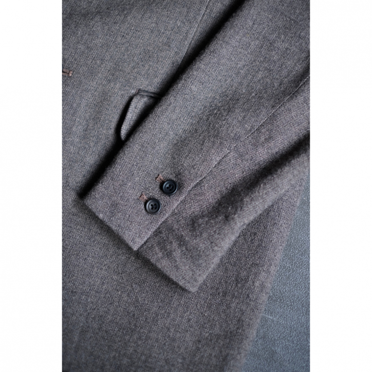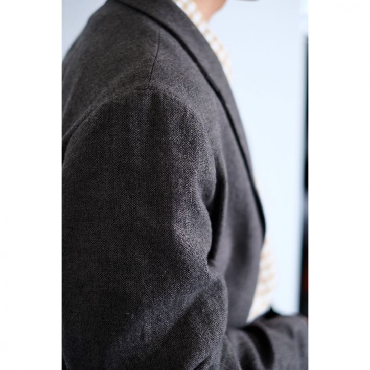 リネン・ウール・カシミヤを織り混ぜたオリジナルのヘリンボーン生地は、ドライすぎず、かといって重たくもない。