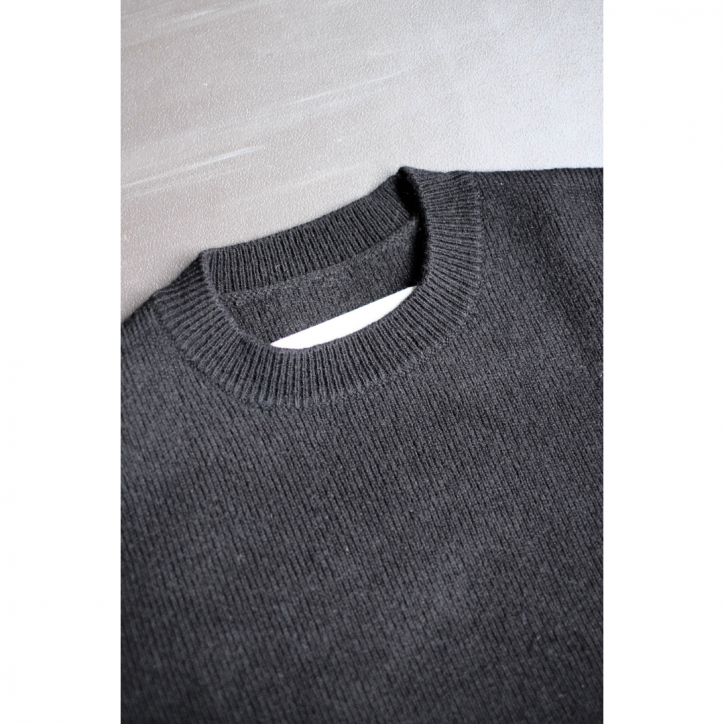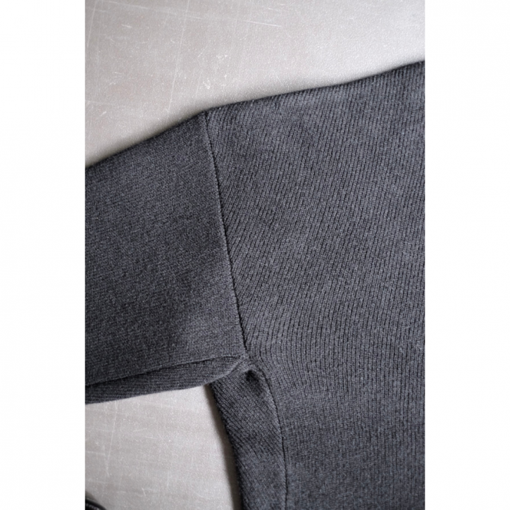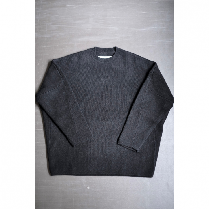 独特のトップの色合いを太番手のローゲージ天竺組織で制作した、立体的なオーバーサイズニット。